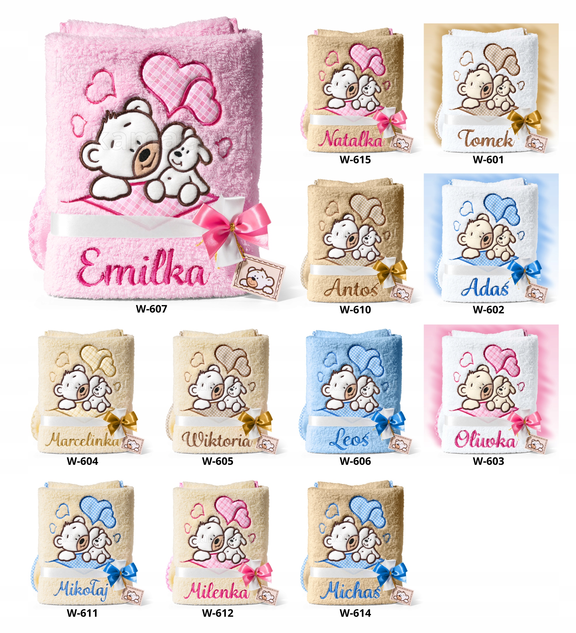 - W-612 вишивка ведмедик з другом, ковдра екрю з рожевим;