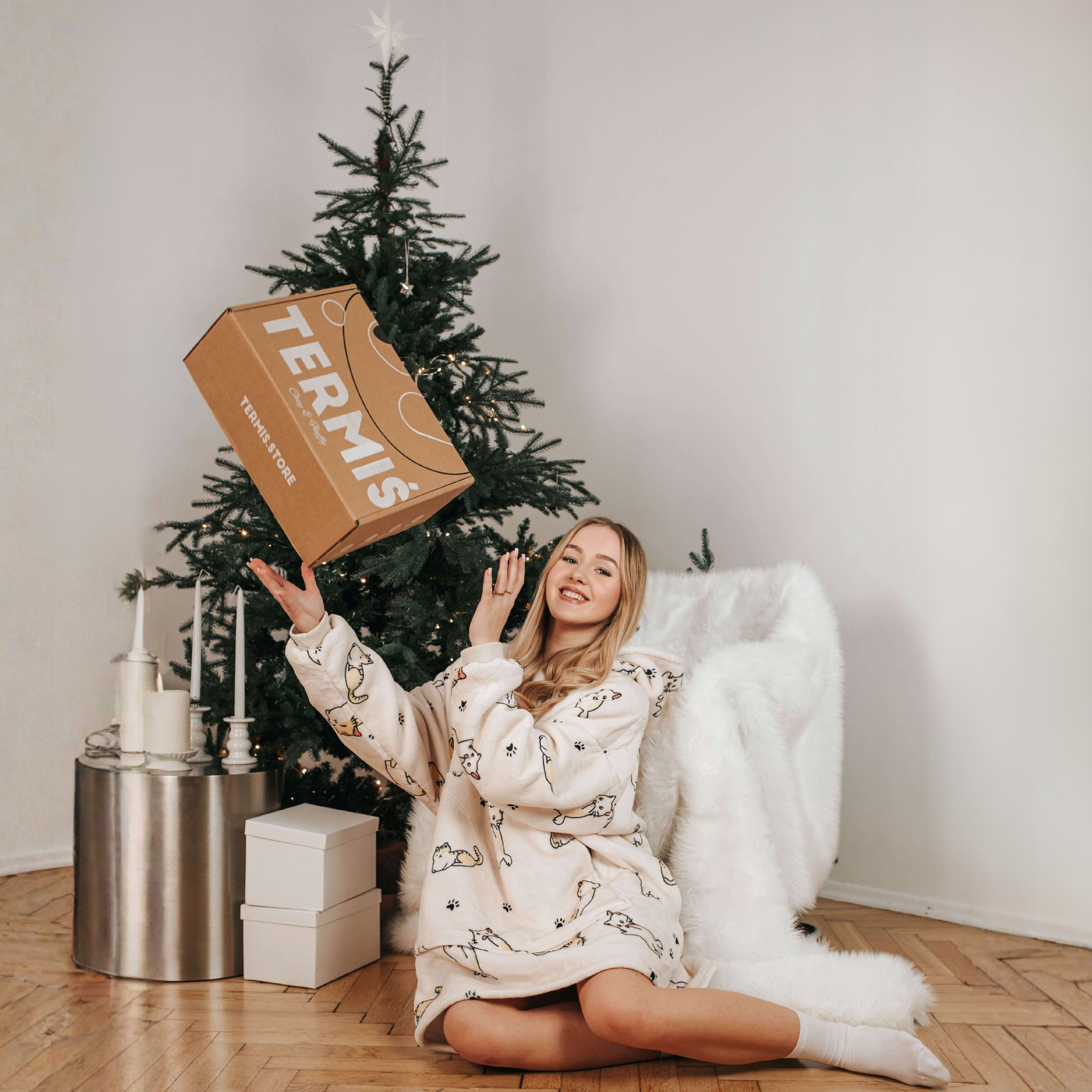 ТЕПЛИЙ РІЗДВЯНИЙ СВІТШОТ З КОТИКАМИ