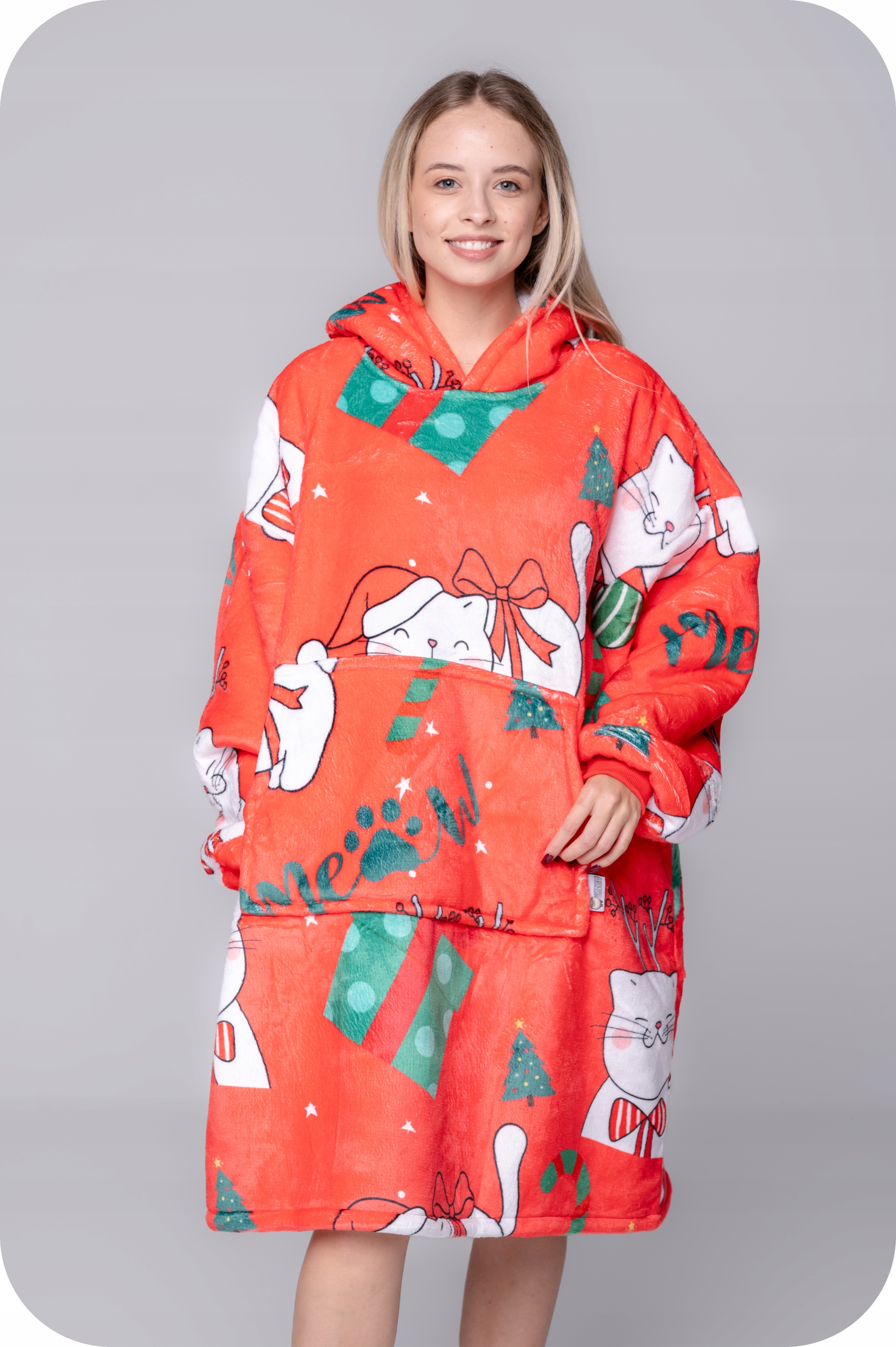 ТЕПЛИЙ СВІТШОТ OVERSIZE BLACKET 2IN1 - CHRISTMAS CATS ⭐⭐⭐⭐⭐