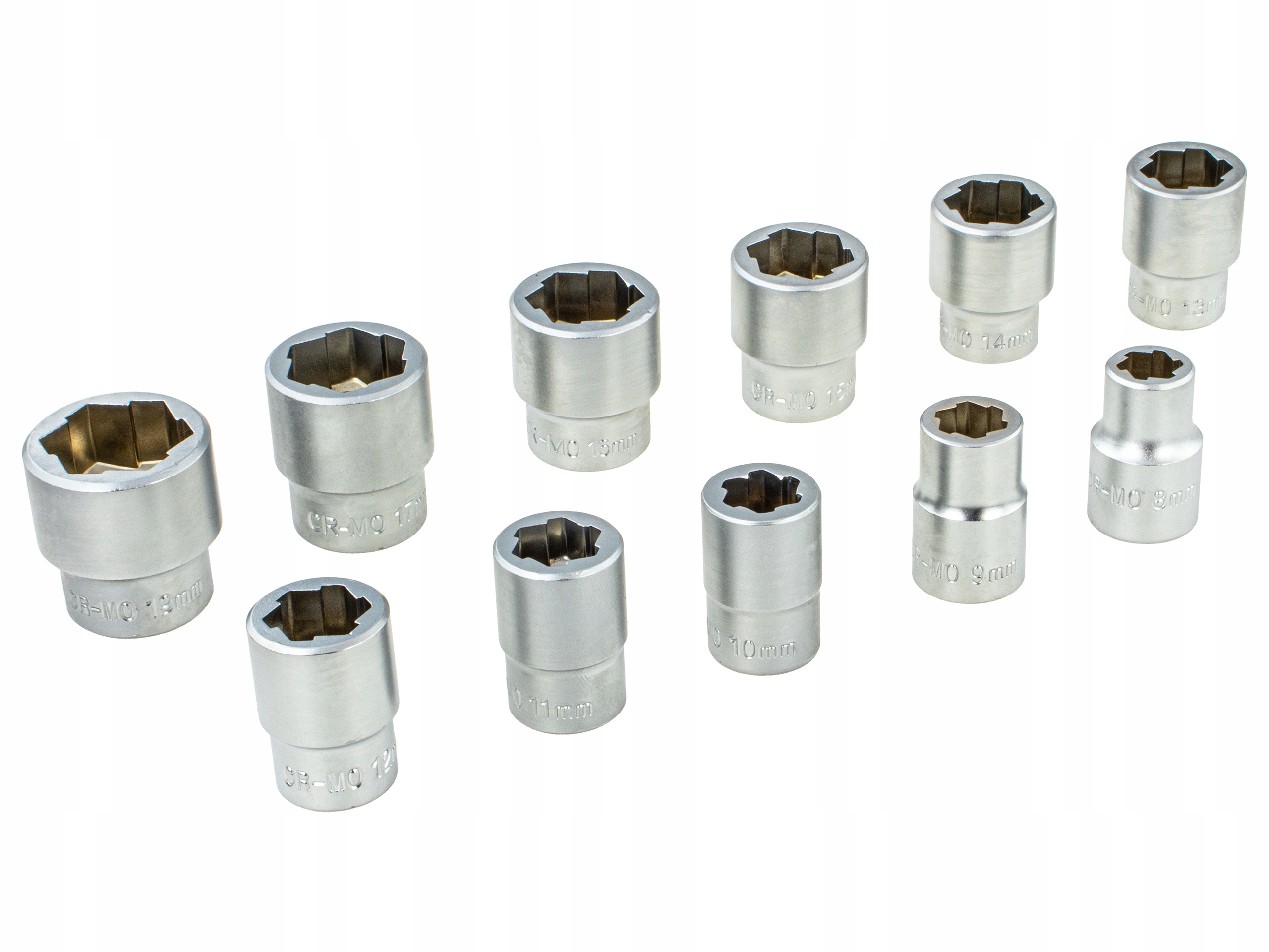 Набір спеціалізованих гнізд для видалення оброблених гвинтів, гайок тощо. Спеціальна форма всередині гніздо дозволяє врізати головку обробленого болта або гайки для зачеплення. Враховуючи точність роботи з відкручування обробленого болта або гайки, використовувати для цих операцій ударний гайковий ключ не слід.