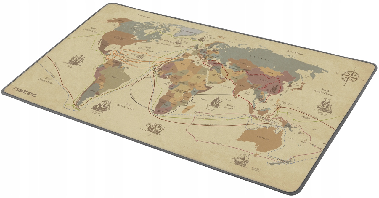 Головною відмінною рисою Natec Discoveries є унікальна графіка, що відображає політичну карту світу з основними експедиціями епохи Великих географічних відкриттів. позначені. Сліди містять імена першовідкривачів, дати окремих експедицій, назви та ескізи флагманів.