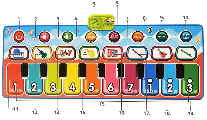✅ Інтерактивний музичний килимок для фортепіано із записом, мелодіями та звуками