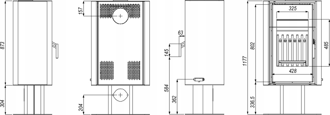 Діаметр димоходу: 148 мм