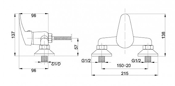 КРАН НА ВАННУ НАСТІННИЙ ДУШ