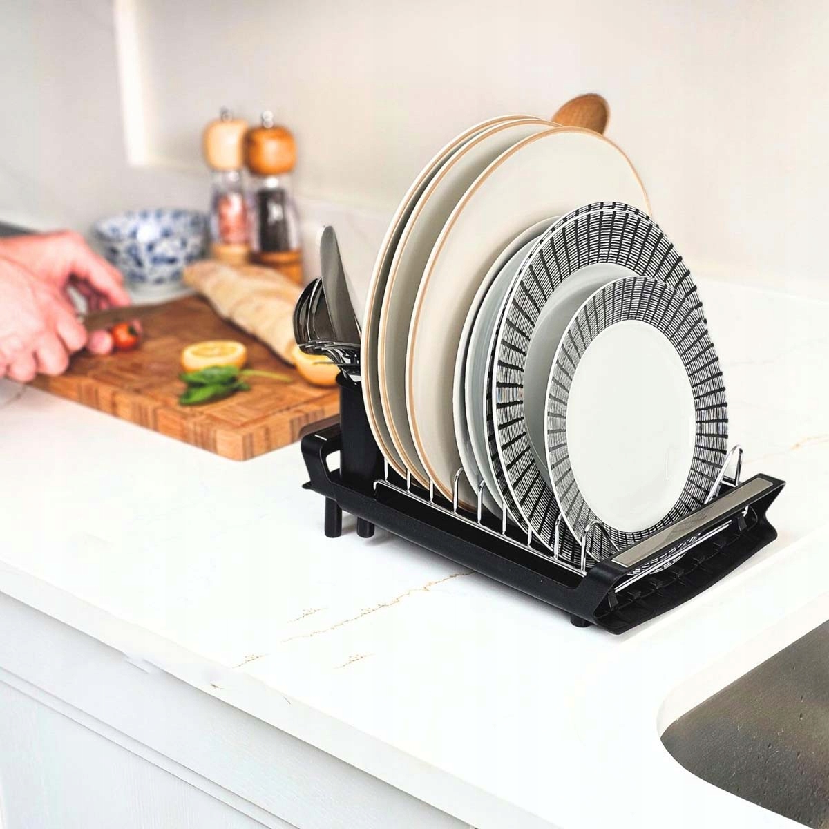 🍴🍴 БІЛЬШЕ ПРОСТОРУ ДЛЯ СТОЛОВИХ ПРИБОРІВ: тримач столових приборів надійно закріплений, що дозволяє сушити більше столових приборів без втрати стійкості.