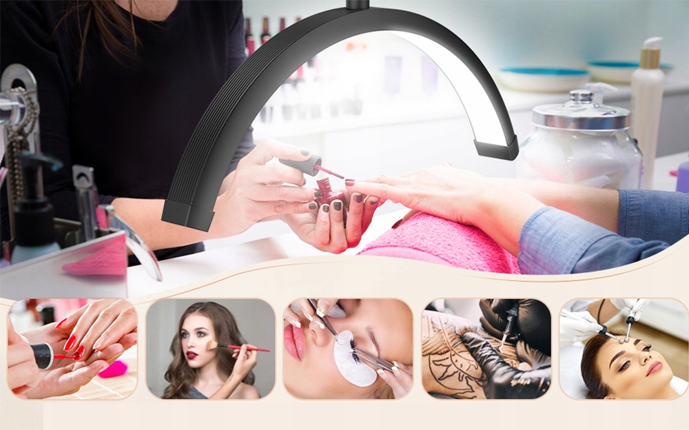 Завдяки дизайну півмісяця освітлення є безтіньовим і може повністю освітлювати робочу зону. Індекс передачі кольору лампи для вій становить понад 95. Лампа для вій є ідеальним освітленням для студій краси, таких як нарощування вій, манікюр і татуювання.