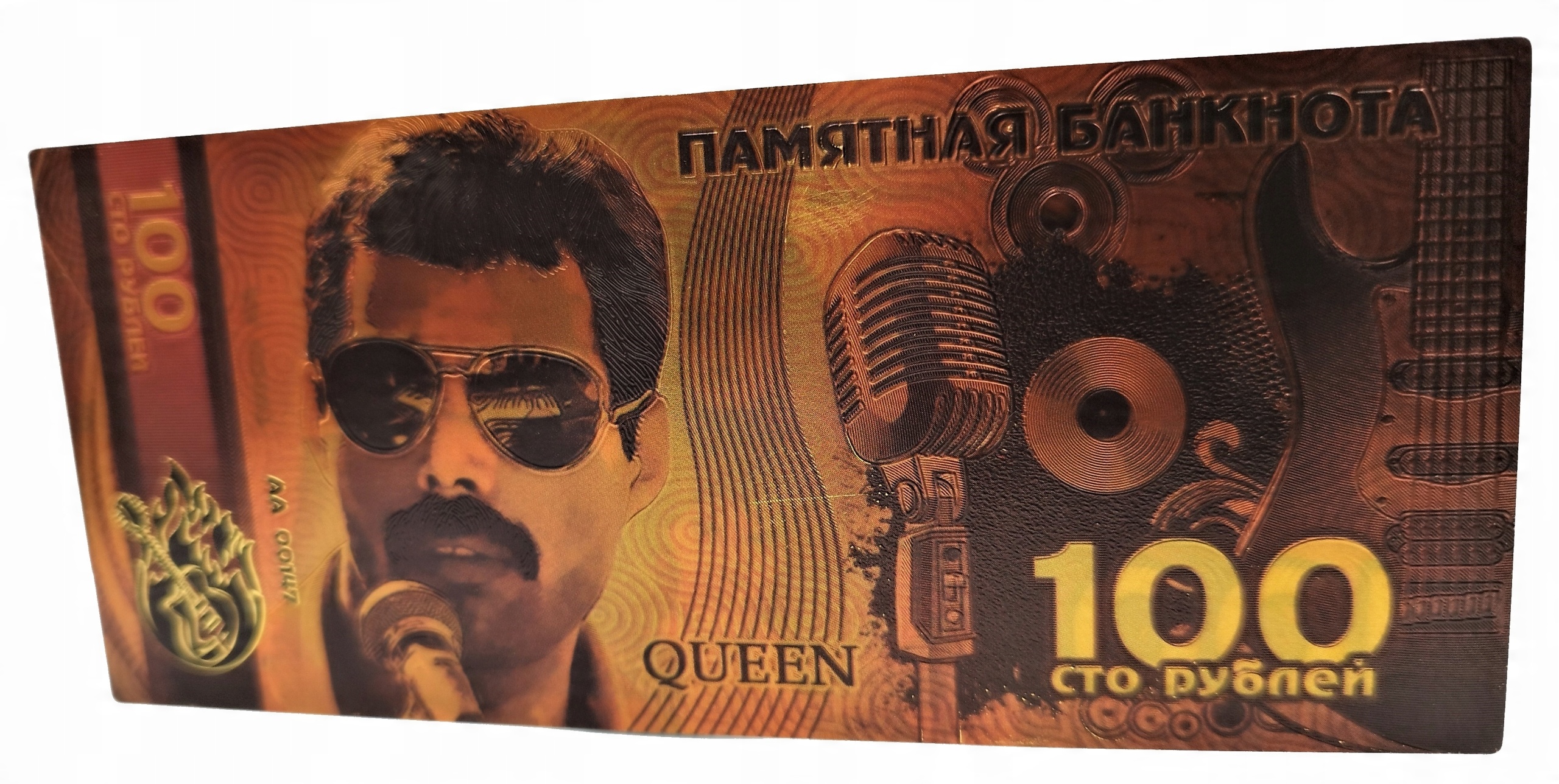 Пропоную на продаж красиву позолочену банкноту із зображенням Фредді Мерк'юрі та групи Queen. p>