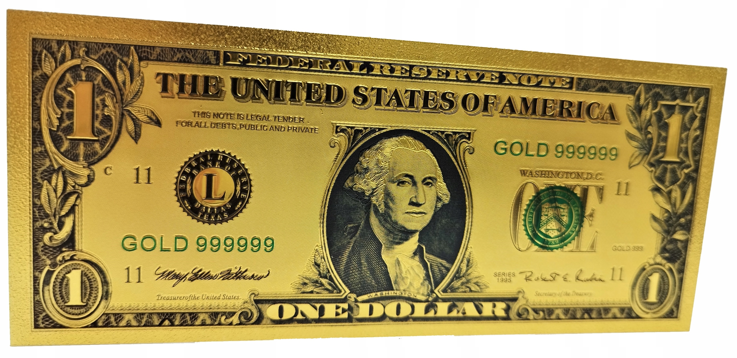 Красива позолочена колекціонерська банкнота номіналом 1 долар