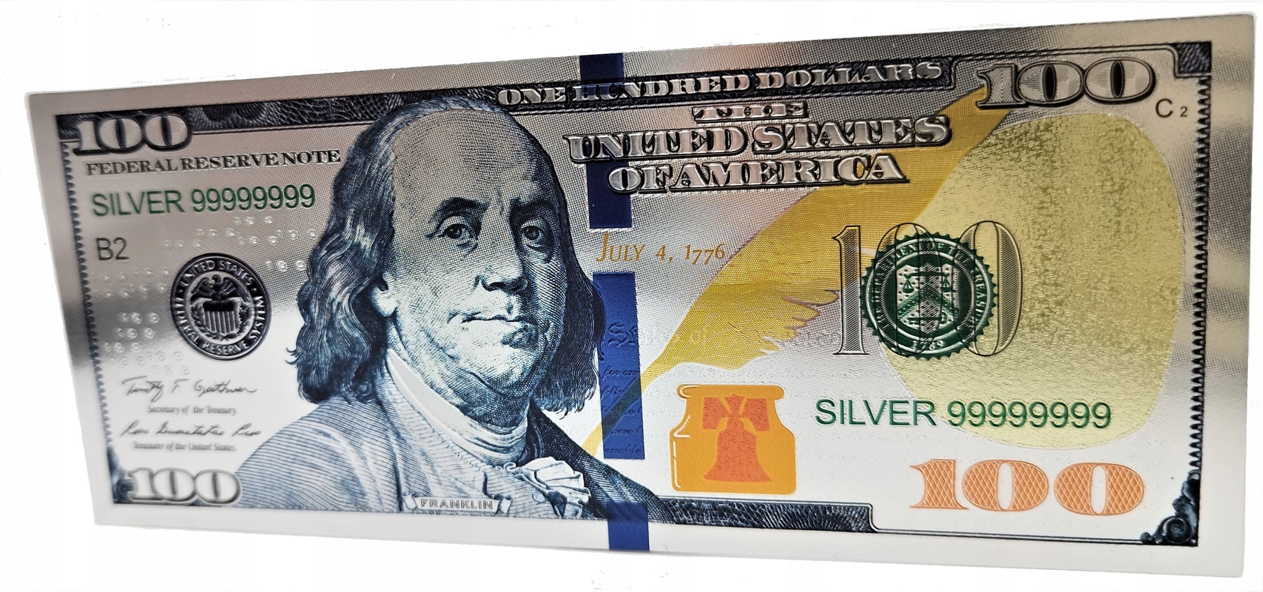 КОЛЕКЦІЙНА БАНКНОТА 100 ДОЛАРІВ США, СРІБНА ВЕРСІЯ
