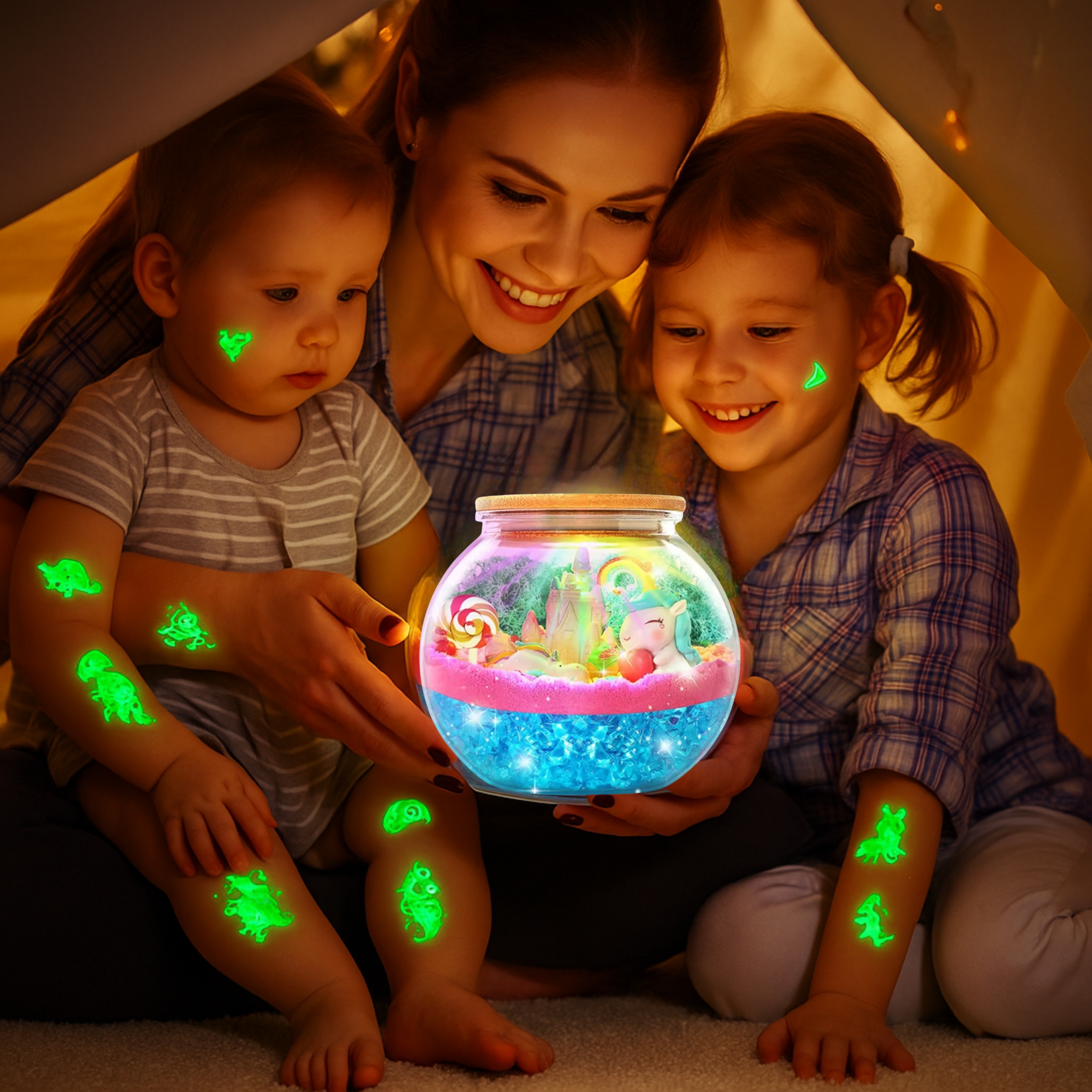 Лампа-єдиноріг із набором татуювань, що світяться в темряві