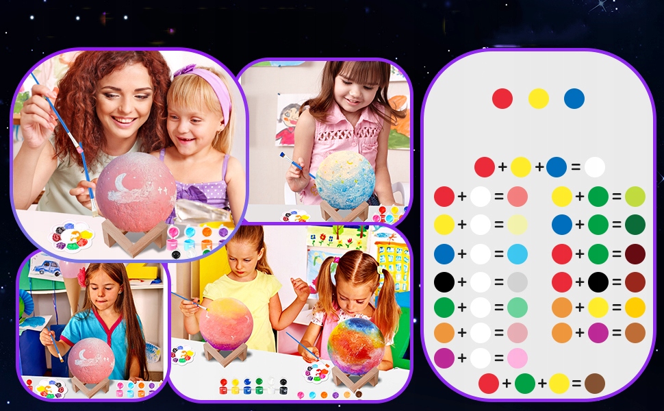 - 🖌️З цією плаваючою місячною лампою DIY комплект для дітей, діти можуть створити свої унікальні витвори мистецтва.