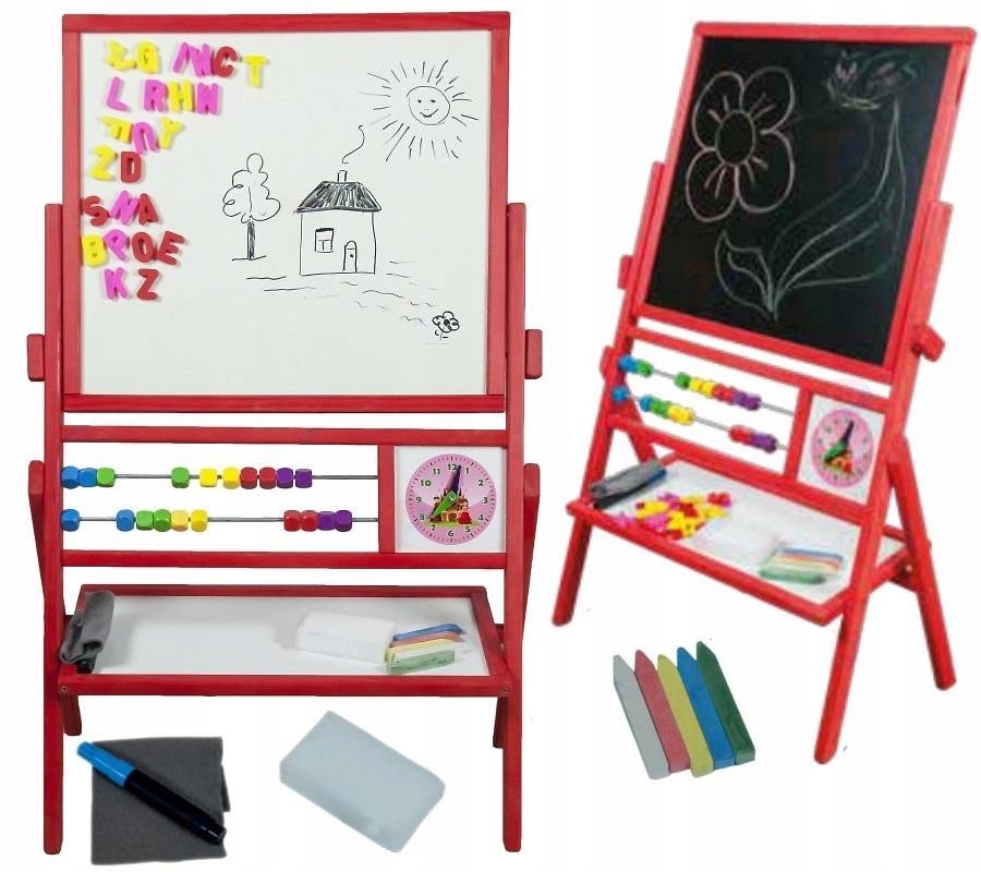 Дерев’яна, поворотна магнітна та картонна дошка - чудова ідея для творчої розваги для вашої дитини. Навчання через гру - це найкращий спосіб належного розвитку дітей. Дошка - це ідеальне місце для практики перших літер та номерів. Це також чудове місце для розвитку мистецького сенсу, роблячи чудові малюнки. З одного боку, це табличка для письма з маркерами, з іншого - крейдовою дошкою. У дитини є утилізація дитини для підтримки підрахунку навчання-стільниця з барвистими кубиками, а також годинника з порадами та полицею для аксесуарів! 4 Ця чудова дошка оснащена губкою, 3 білими крейдою, маркером.