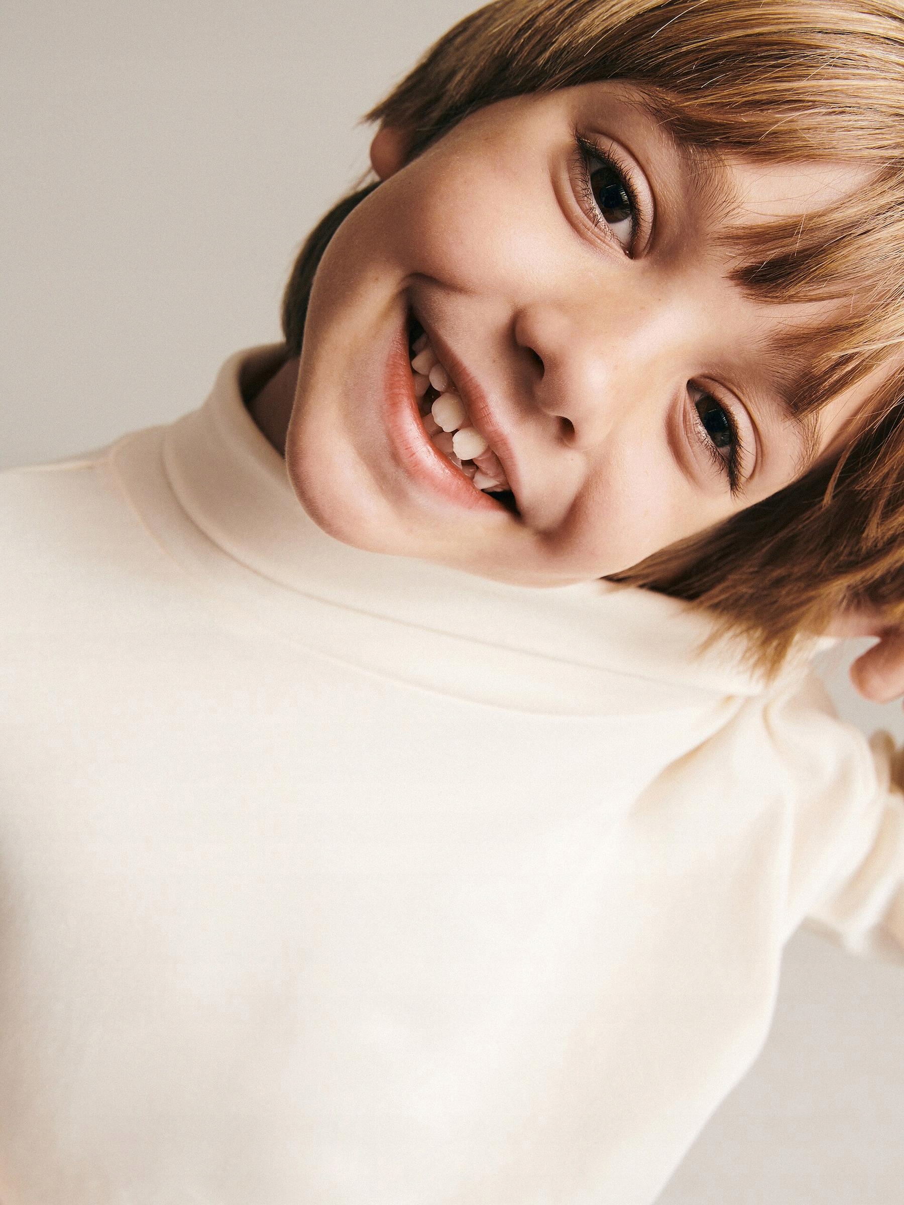 Кремовий бавовна класичний гладкий водолазка з довгими рукавами прямо 116