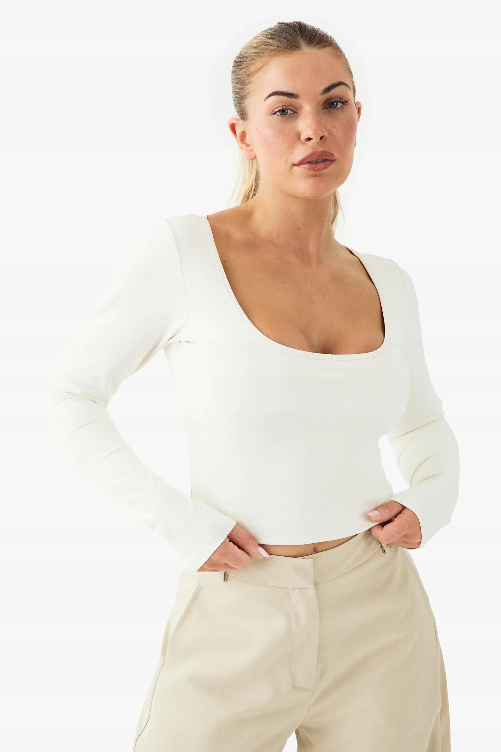 КРЕМОВИЙ СПОРТИВНИЙ ТОП З ДОВГИМ РУКАВОМ, ПРИТАЛЕНИМ КВАДРАТНИМ ВИРИЗОМ BOOHOO 36