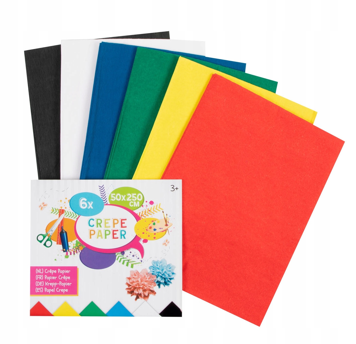 КРЕПОВИЙ ПАПІР 50 х 250 см х 6 АРКУШІВ МІКС КОЛЬОРІВ