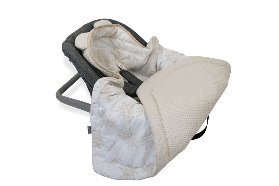 Чохол для автомобільного сидіння, також відомий як ковдра-переноска, призначений для безпеки дитини під час подорожі в автомобілі. Він зігріває вашу дитину і замінює традиційний комбінезон. Завдяки спеціальним отворам на задній частині дозволяє правильно пристібати ремені безпеки.