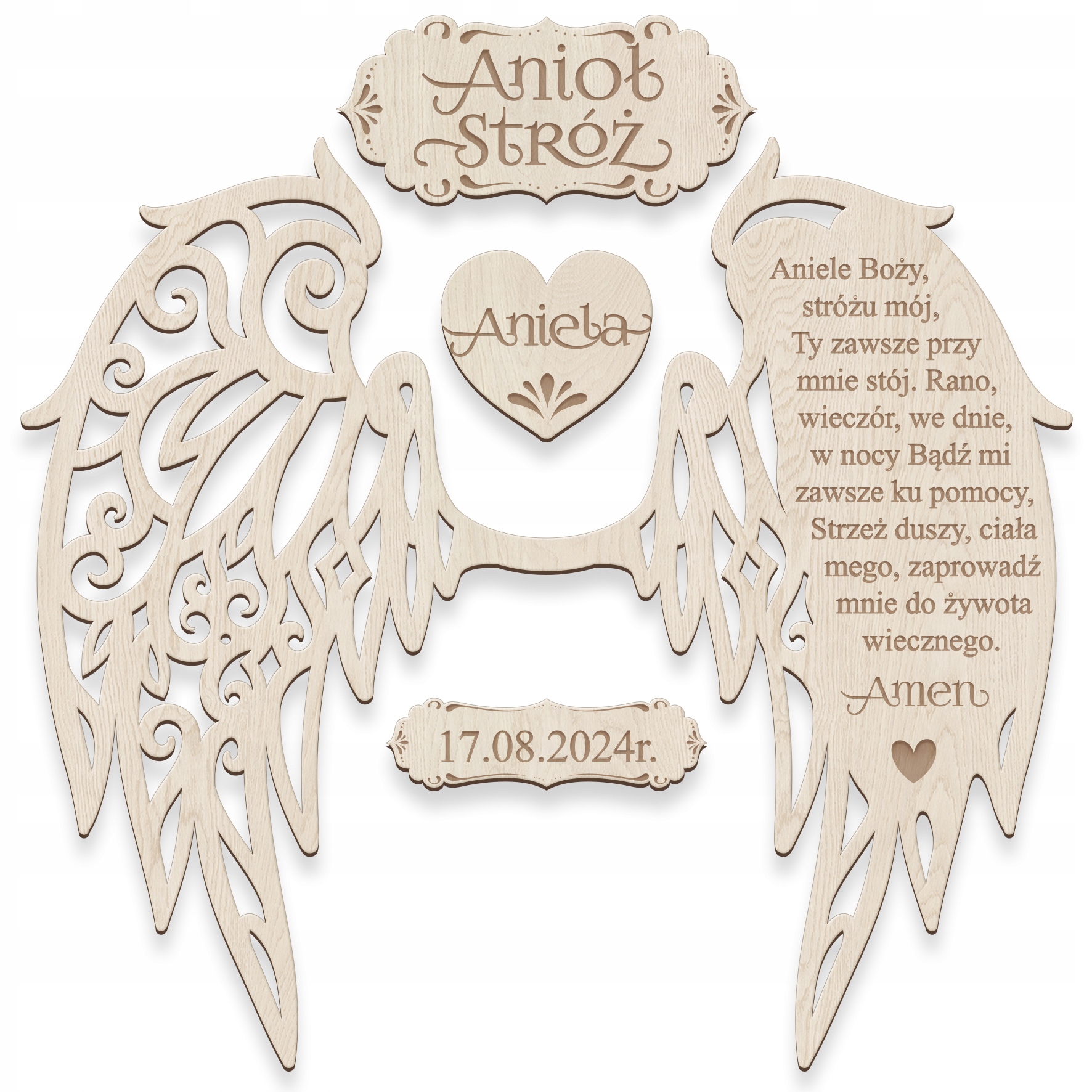 Крила з молитвою, табличка з написом на ангела з іменем Макрами