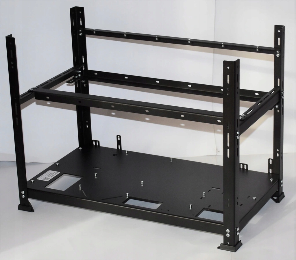 - корпус дозволяє встановити 6 відеокарт і 4 блоки живлення (два поруч до материнської плати та два для задніх ніжок корпусу)