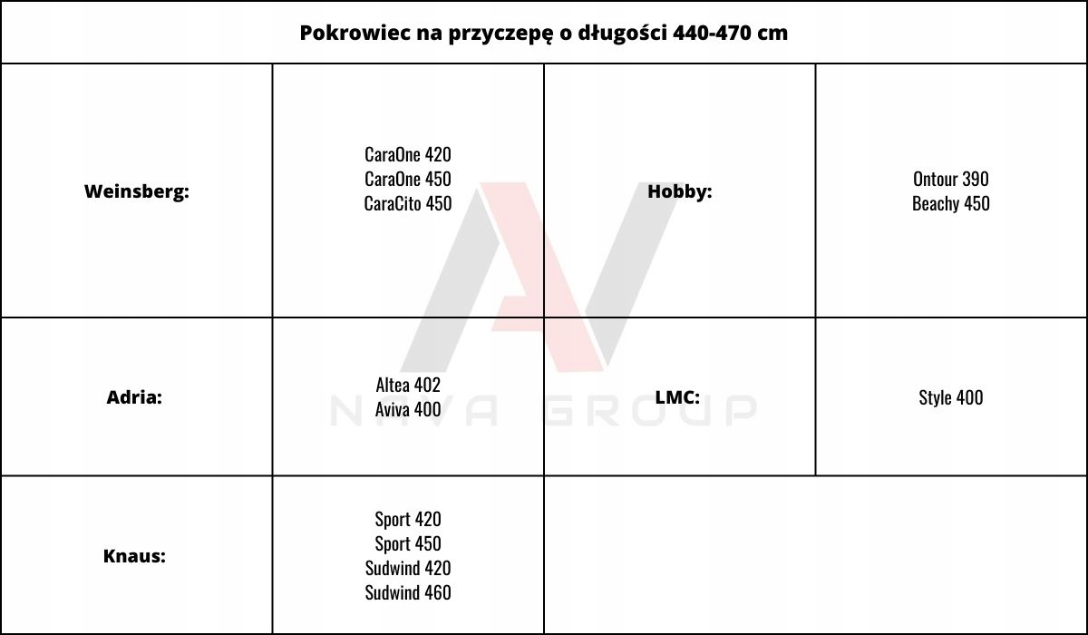 Чохол дуже добре підходить для караванів загальною довжиною 440-470 см.