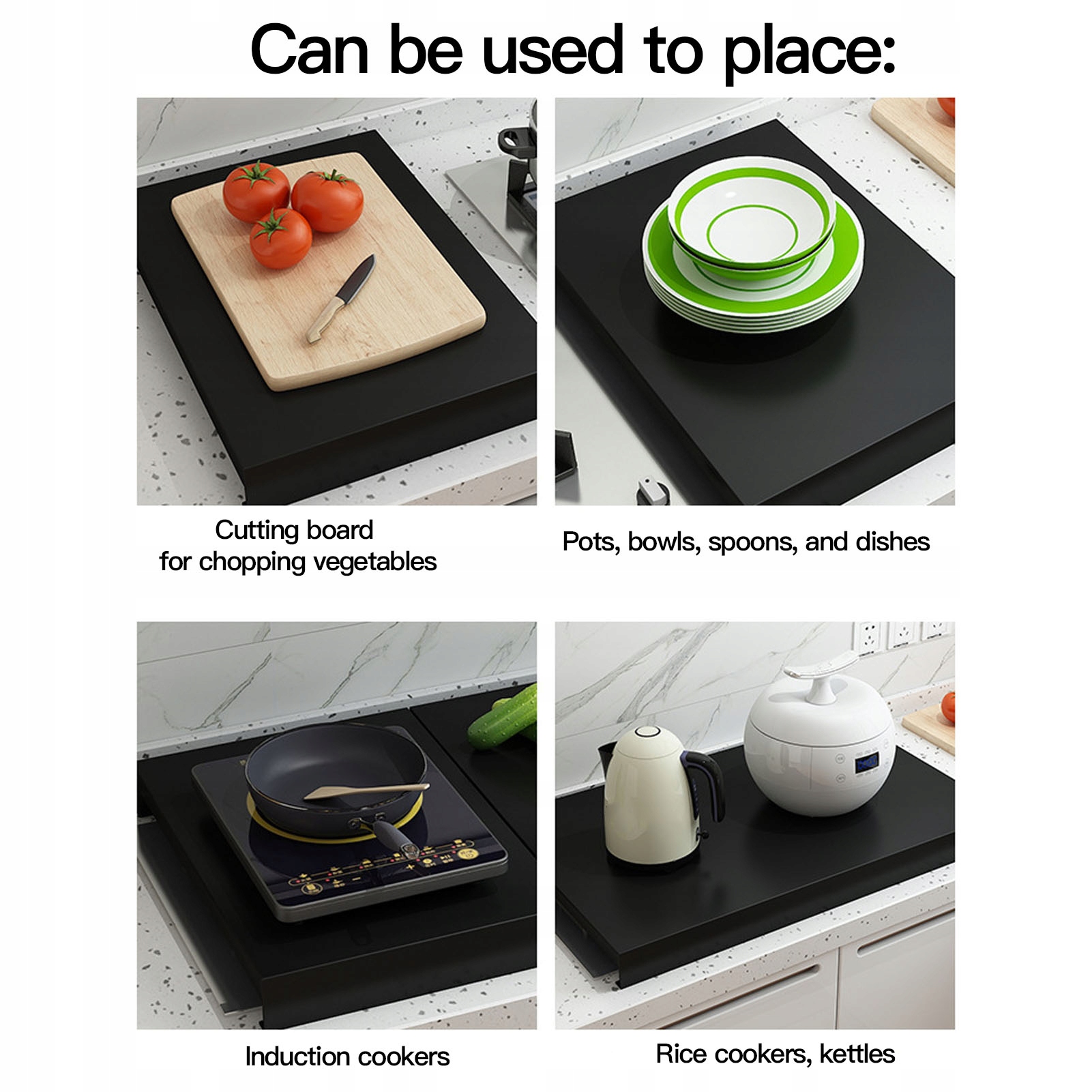 3. Створіть більше робочого простору: накрийте газову плиту, щоб створити більше місця на стільниці. Використовуйте його як кухонну стійку або платформу для зберігання інструментів або інгредієнтів. Чудово підходить для квартири, маленької кухні та фургону. Максимальна вага навантаження становить 110 фунтів.