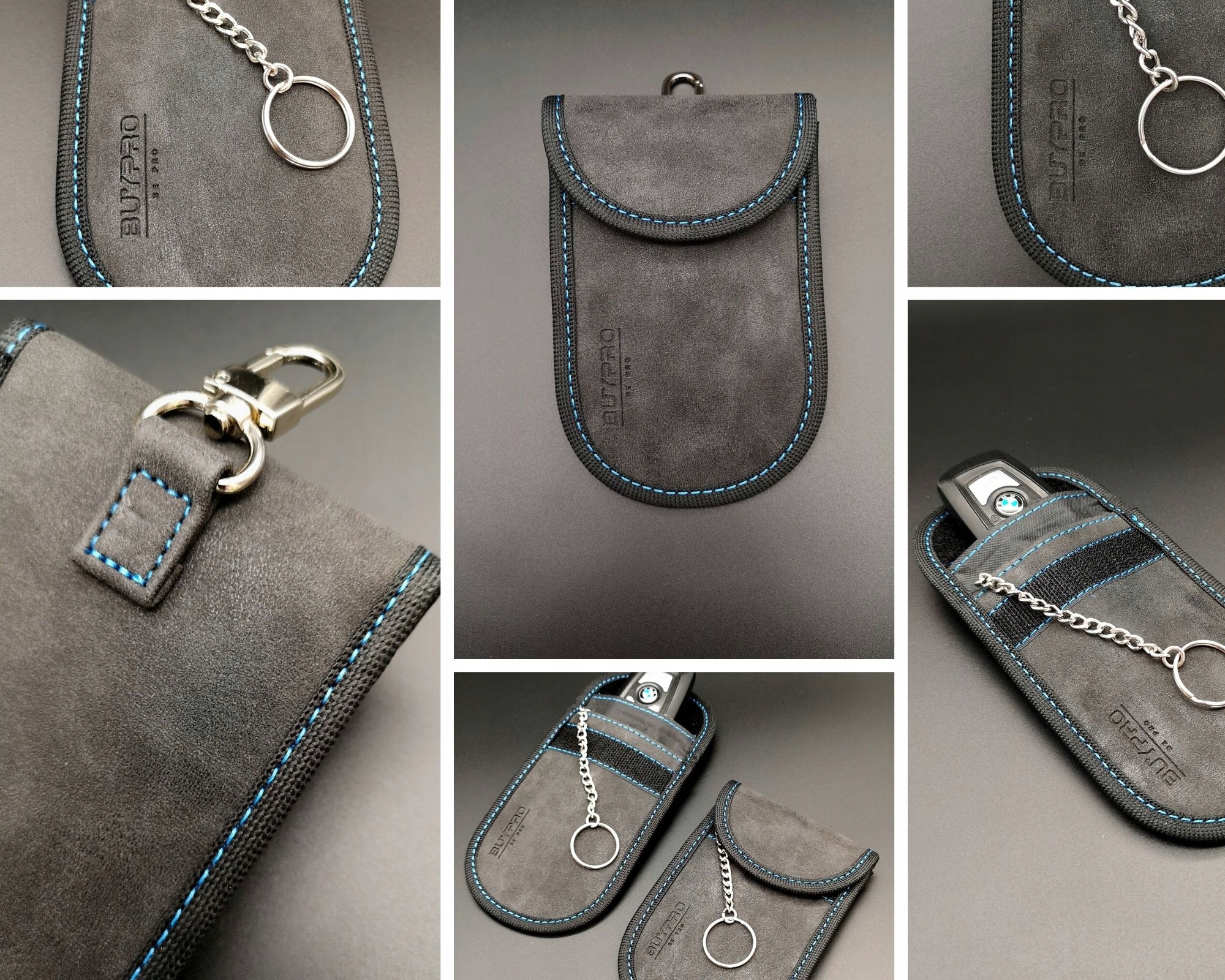 Ексклюзивний чохол BuyPro: він виготовлений з високоякісної шкіри, а внутрішня частина виконана з високоякісної екрануючої тканини. Дуже міцний і елегантний. Чохол має дві кишені, одну для блокування сигналу, іншу для відмикання, і в ній можна зберігати ключ, наприклад, під час руху. Крім того, ви можете зберігати своє посвідчення особи, водійські права та платіжні картки в обкладинці, щоб захистити їх від крадіжки даних.