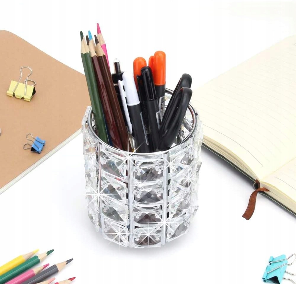 Метал, покритий квадратним кристалом. Сучасний простий дизайн ідеально підходить для прикраси комода або столу. Ідеально підходить для організації пензлів для макіяжу, косметики, зубної щітки, канцелярського приладдя для олівців, підсвічника.
