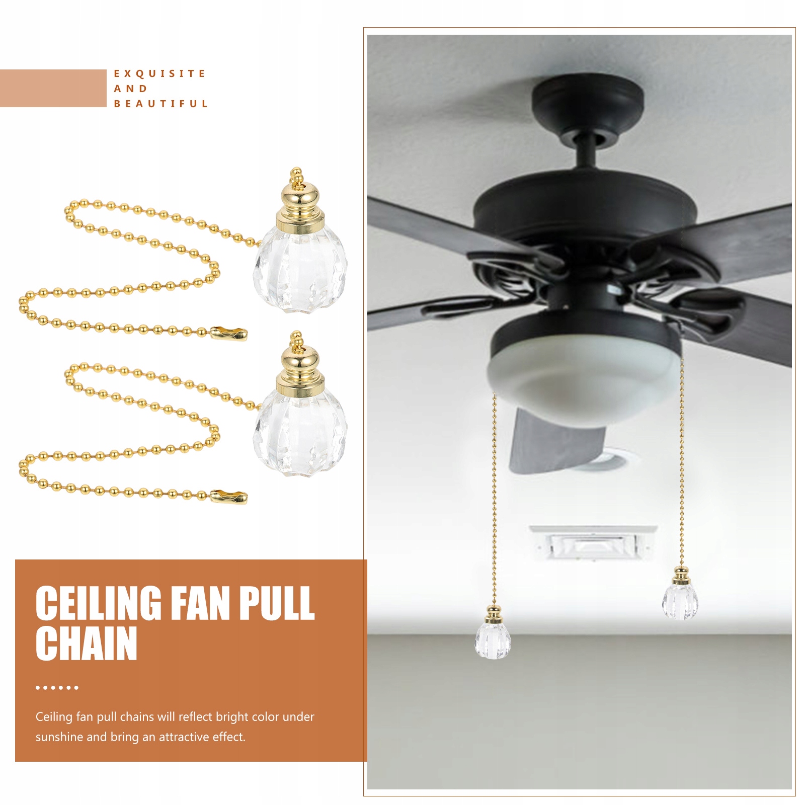✅ten. Ланцюг вентиляторів стелі виготовлений з кристала і заліза, що є ідеальним ланцюгом для стельового вентилятора. Стельові вентилятор стоки відображатимуть яскравий колір на сонці та принесуть привабливий ефект. Буде прикрасити інтер’єр і збагачувати кольори вашого будинку.