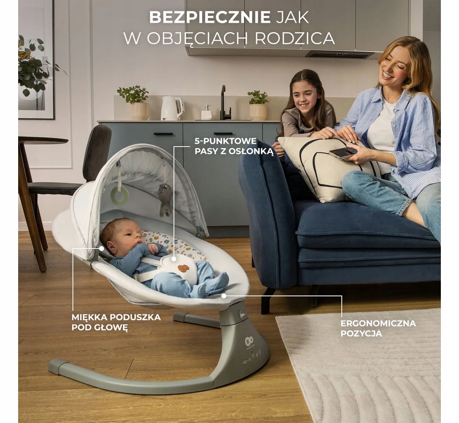LUMI 2 — це красива качалка і шезлонг в одному. Як качалка, вона ніжно розгойдує малюка з боку в бік, забезпечуючи йому відчуття безпеки. Розгойдування з боку в бік створить відчуття, що дитина у вас на руках.
