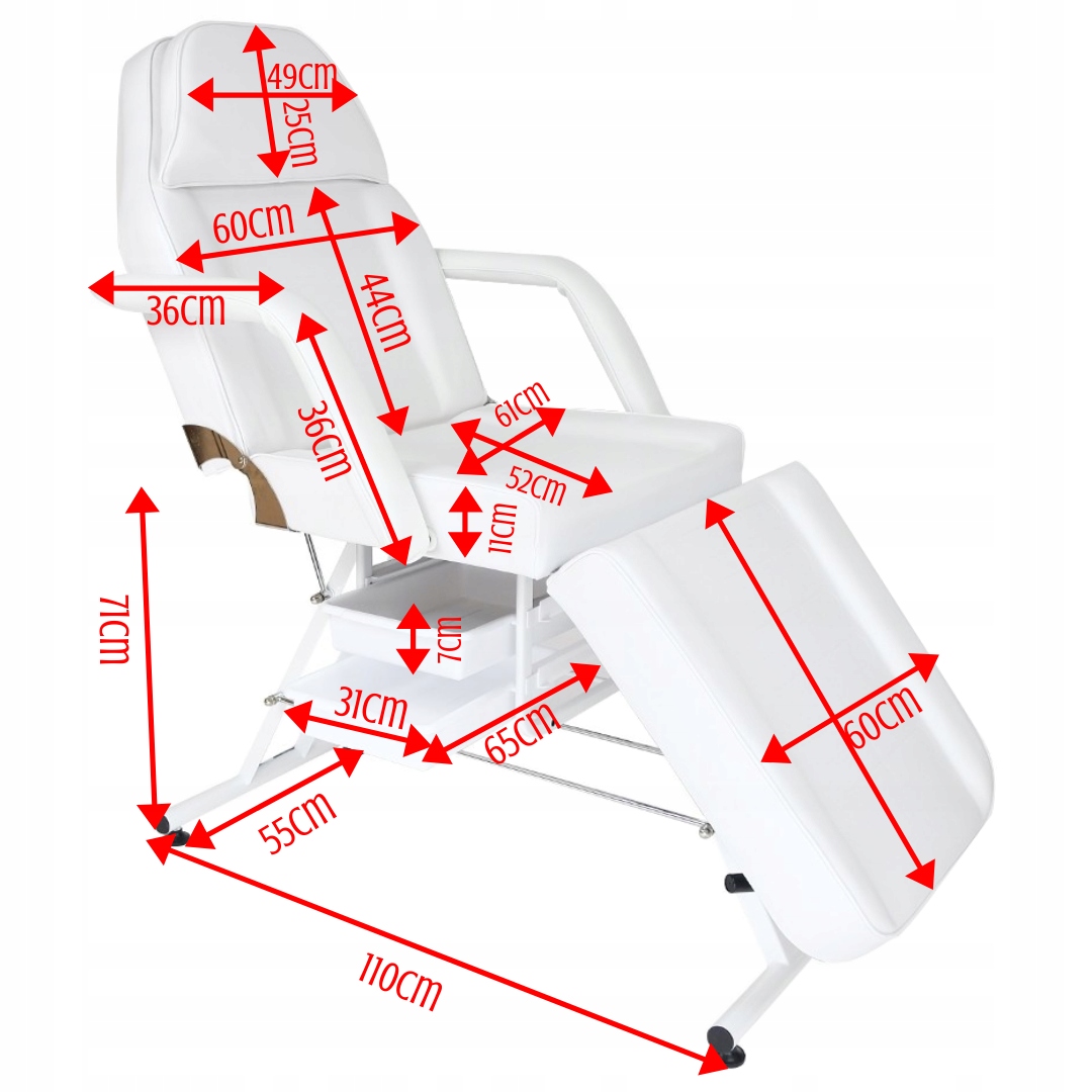 Крісло виготовлене з високоякісної екошкіри, яка легко підтримується в чистоті та стійка до певних дезінфікуючих засобів (не містить гасу, спирту, аміаку, використання їдких речовин може призвести до зміни кольору та стирання). Спинка і підніжка мають ручну, дуже зручну систему регулювання кута нахилу. Регулюючи нахил спинки та підніжки, крісло можна встановити оптимальним чином для правильного та комфортного виконання процедури.