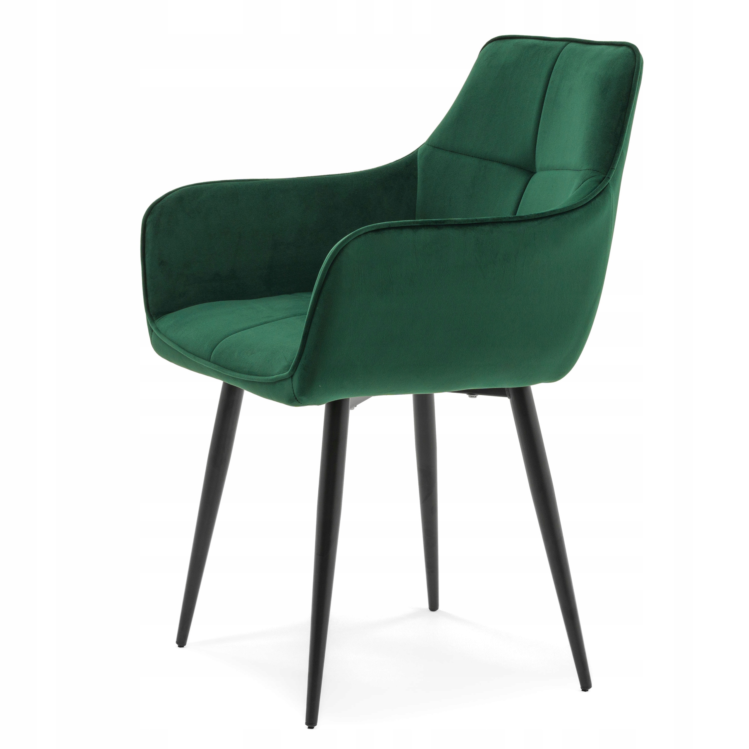 Крісло оббито оксамитовою тканиною Bluvel зеленого кольору. Сидіння наповнене кількома сантиметрами м'якої піни, а стильне стьобання, що прикрашає передню сторону спинки, додає шарму. Тонкі ніжки виготовлені з пофарбованої в чорний колір сталі. Крім того, крісло має підлокітники.