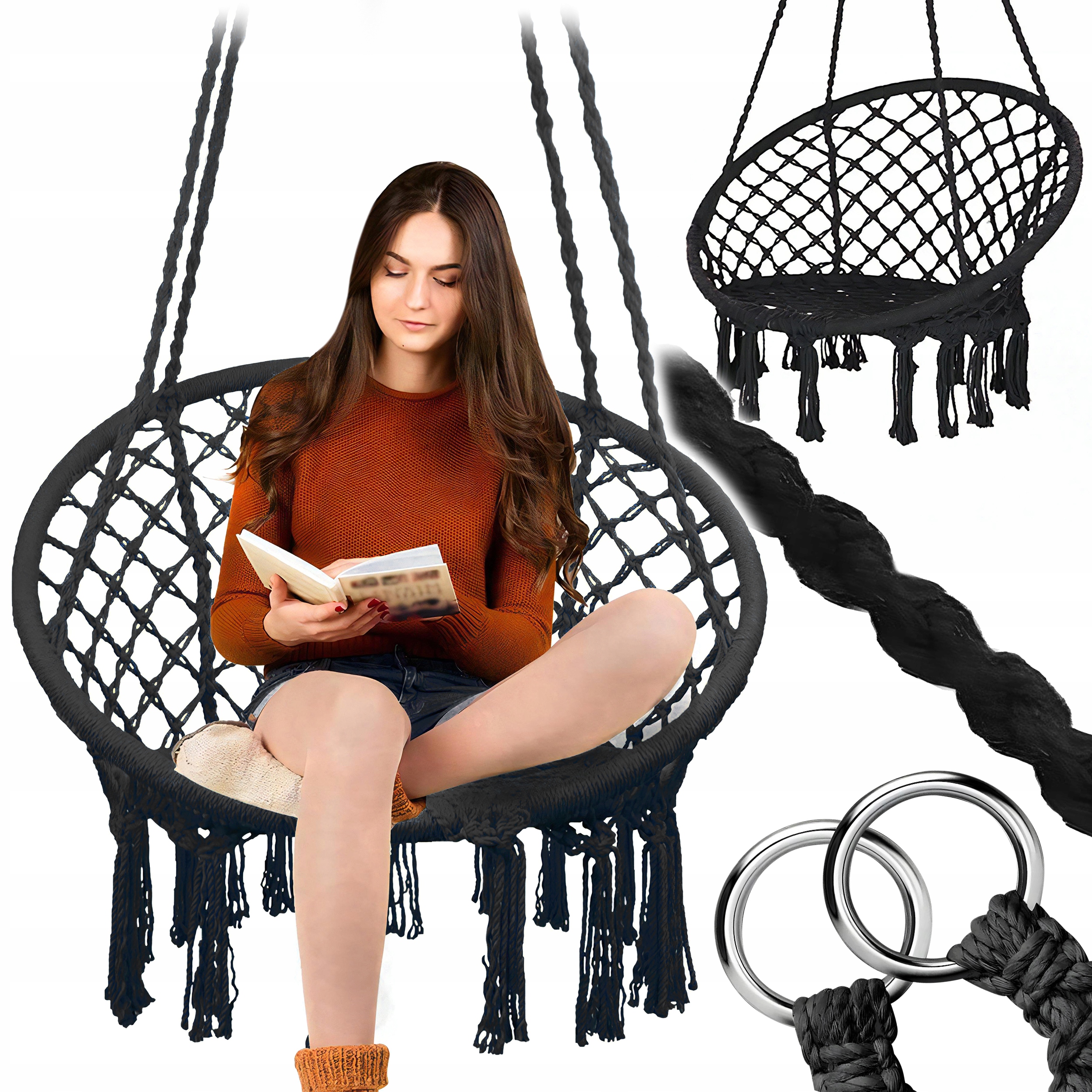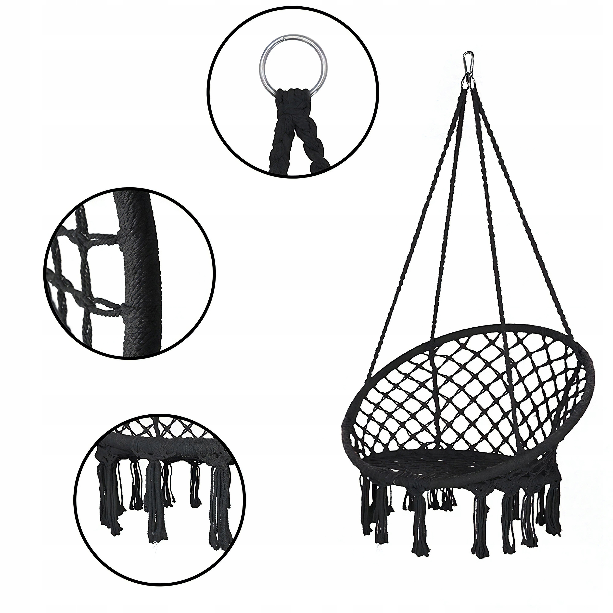 КРІСЛО-ПІДВІСНА ГОЙДАЛКА САДОВА 80СМ ДЛЯ САДОВОГО ГНІЗДА чорний БОХО МАКРАМЕ