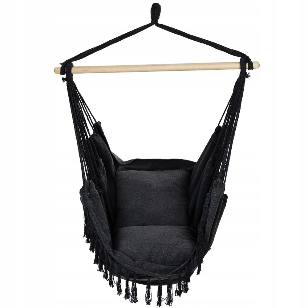 Красиве і зручне тканинне крісло в стилі бохо , який забезпечить відпочинок як в саду, на балконі, так і в спальні чи вітальні. Підвісне крісло виготовлено з міцного матеріалу, який є комбінацією бавовни та поліестеру, тому є стійким до стирання. Крім того, завдяки міцній дерев'яній конструкції та міцним канатам максимальне навантаження становить до 150 кг.
