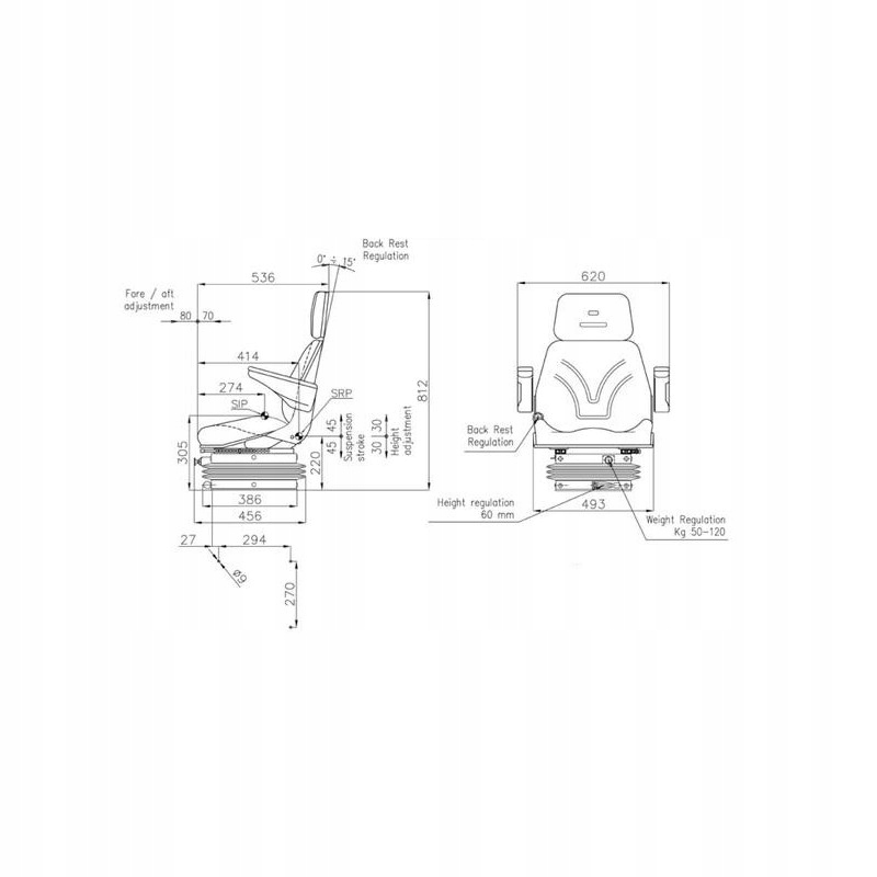 - Налаштування сидіння, передня/ззаду [мм]: 150