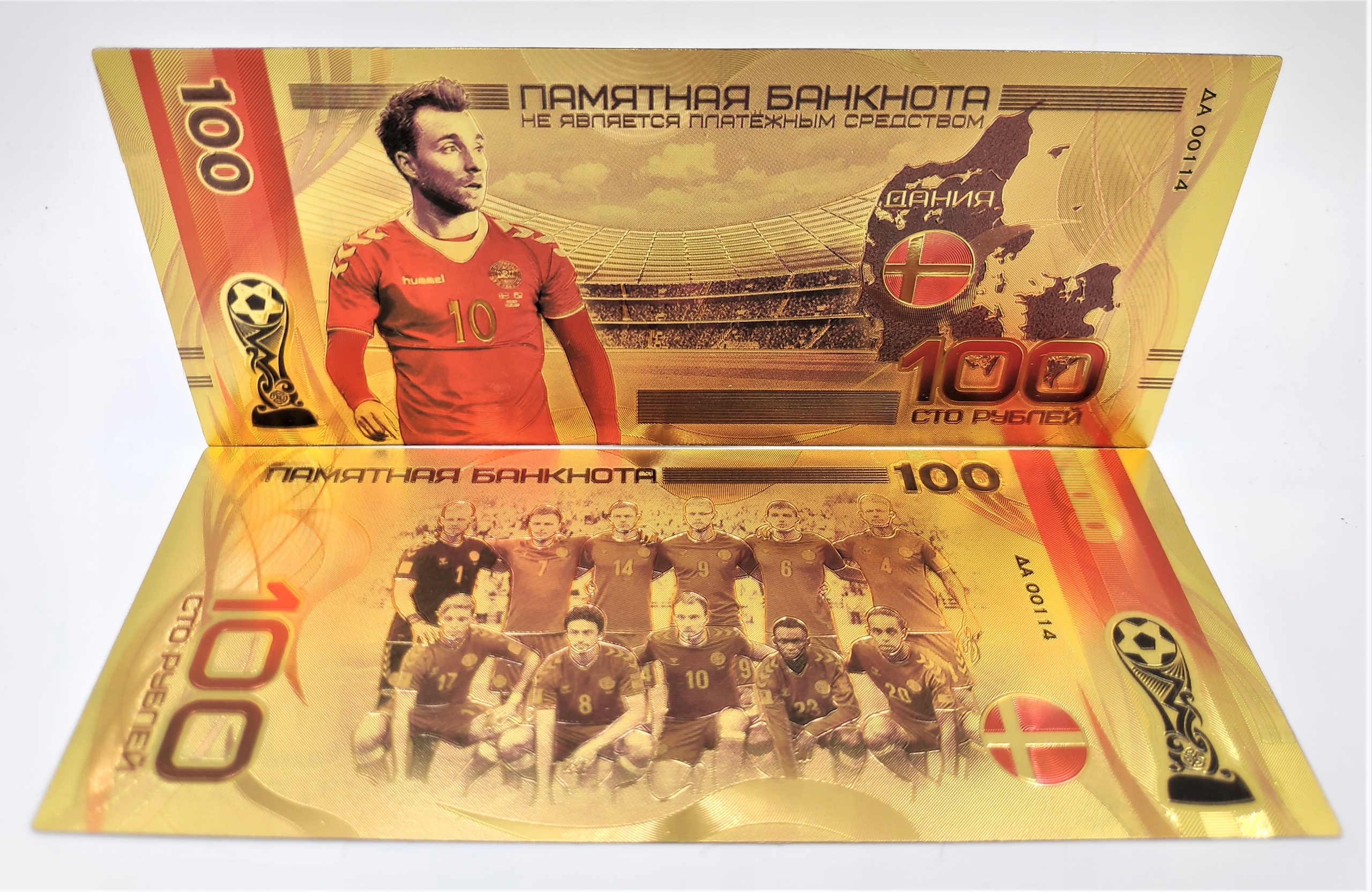 Продаю красиву позолочену банкноту номіналом 100 рублів із зображенням Крістіана Еріксена.