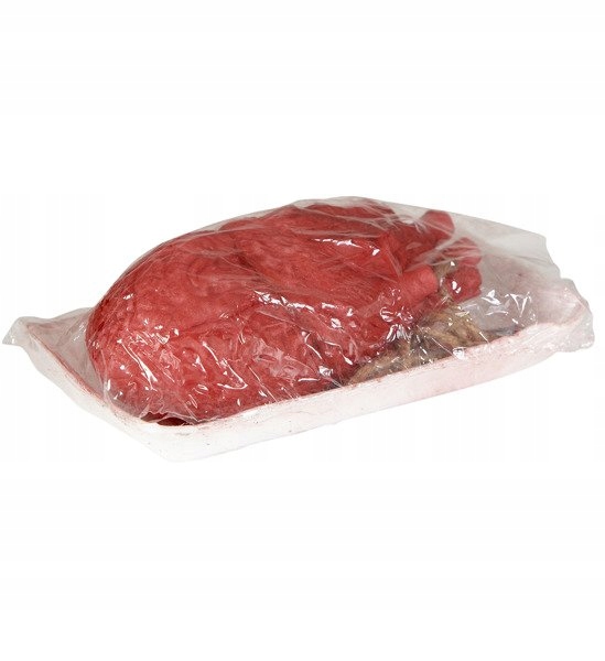 Пластикове серце кладеться на піднос із пінополістиролу та загортається у фольгу.