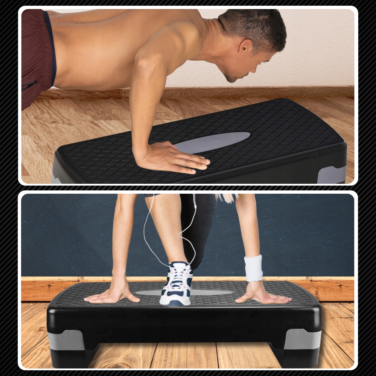 2 -градусний степ для фізичних вправ виробляється з матеріалів найвищого виду. Завдяки турботі про якість матеріалів, наша продукція характеризується високою стійкістю до пошкоджень, навіть під час інтенсивних тренувань у складних умовах.