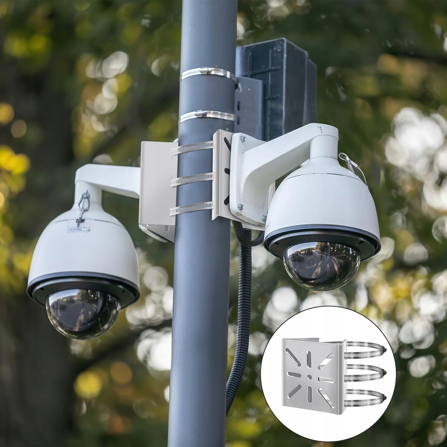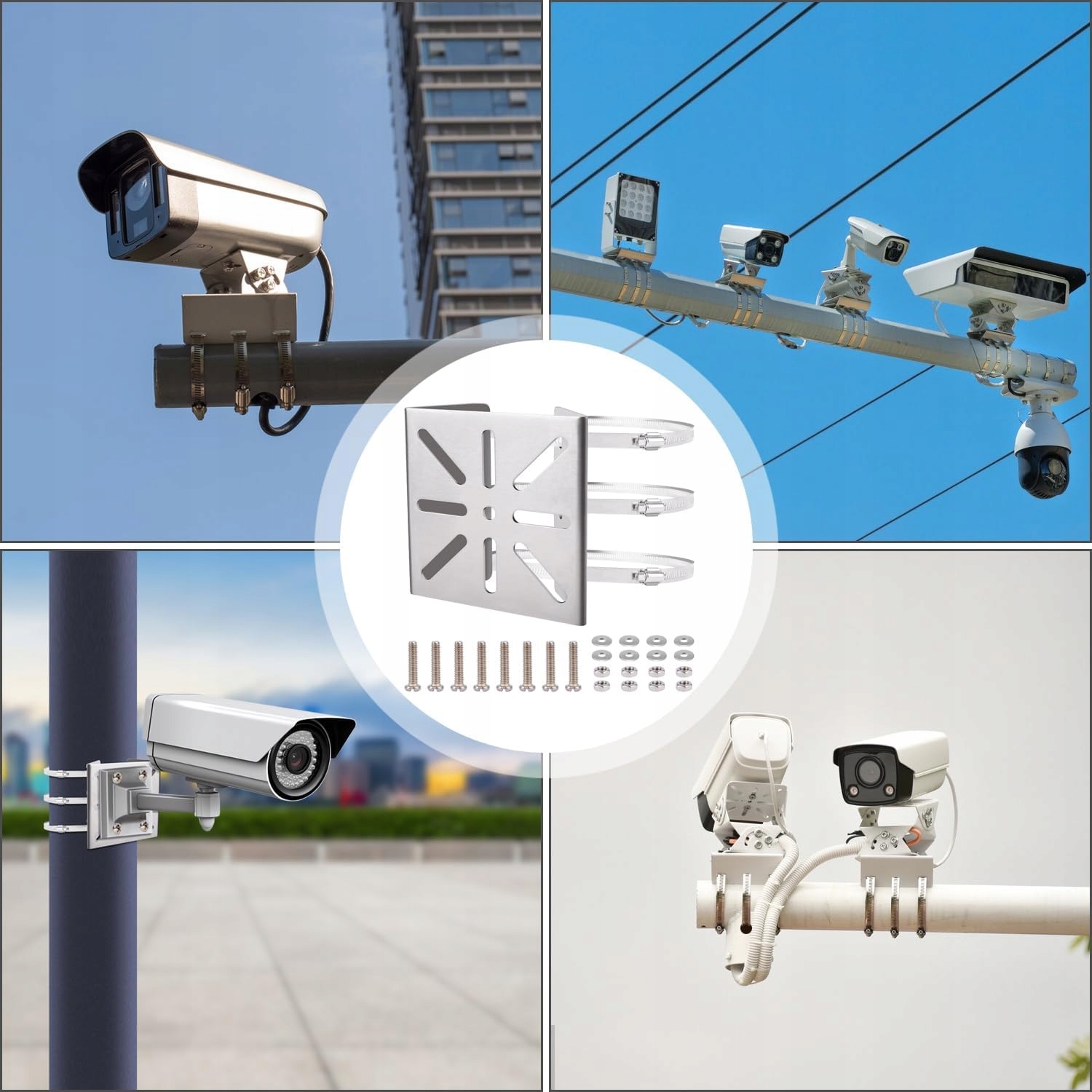 Це кріплення на щоглі ідеально підходить для встановлення камер спостереження, світлодіодних ламп та інших пристроїв. Незалежно від того, чи хочете ви прикріпити пристрої моніторингу до стовпа чи стовпа інженерних мереж, це кріплення для стовпа стане ідеальним вибором.