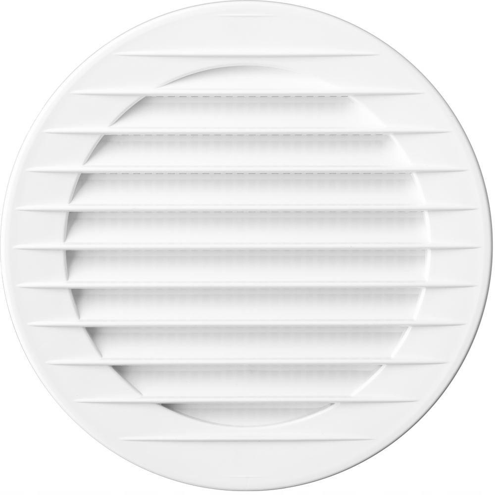 Круглі вентиляційні решітки з сіткою є завершеннями припливно-витяжної системи вентиляції приміщень всередині і зовні будівлі. Рекомендуються для монтажу в трубах Spiro і пластикових системах вентиляції та під плоскими дахами. Перевагою даної вентиляційної решітки є сітка, яка заливається на етапі виробництва, яка відводить комах від квартири. Унікальний метод передбачає розміщення сітки в дизайні на етапі виробництва, завдяки чому вона не забруднюється, не відривається, не пошкоджується і в тому ж кольорі, що і сітка - надовго зберігає свої естетичні цінності. Форма жалюзі спрямовує повітря «вниз», тому ефект охолодження в приміщеннях з вентиляційною решіткою відсутній.