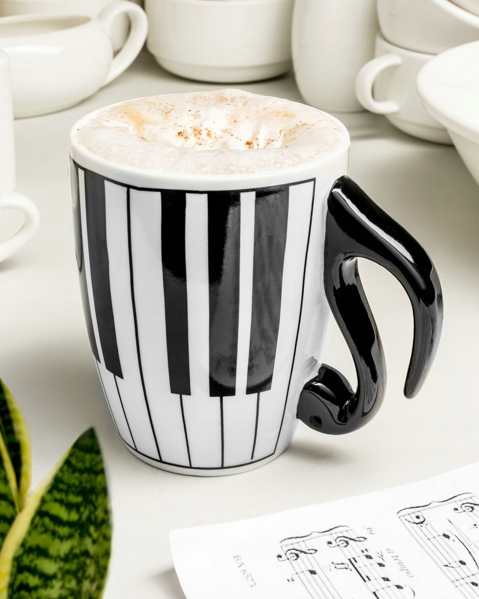 Нова модель музичної кухлі KEYS має нову красиву форму, кращу якість виготовлення, більшу місткість і гарнішу упаковку. Але це все одно унікальна кухоль для тих, хто хоче розпочати день яскраво. Візьміть нашу чашку за... ноту, яка є її ручкою, і почніть свій день із новою гарною енергією. Наша музична чашка, безсумнівно, є чудовим подарунком для всіх шанувальників і любителів музики, не тільки класичної. Кружка розписана вручну, що робить кожен виріб унікальним.