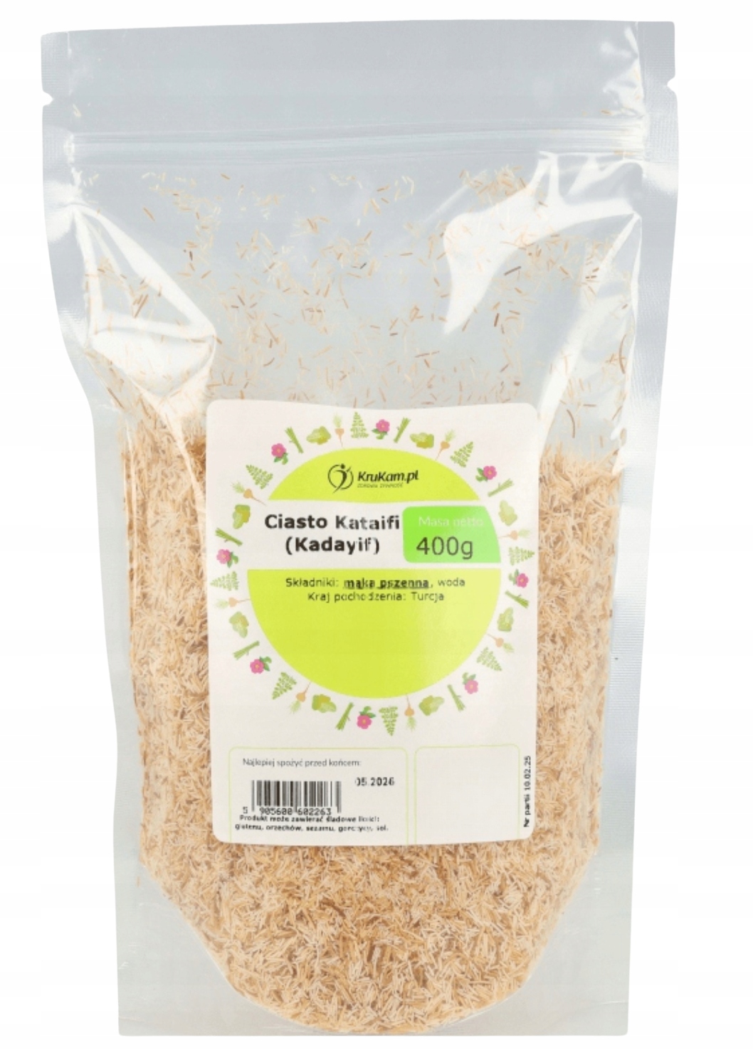 - це хрусткий, смажений торт, який отримав славу як ідеальний інгредієнт для створення вірусного шоколаду Дубая. Цей продукт вже містить готовий, запечений торт, ідеально підходить для змішування з фісташковою пастою. Це тип філо -торта, який після випічки створює довгі тонкі нитки, які також називають "Angel Hair". У багатьох країнах регіону він відомий під різними назвами - наприклад, у Туреччини його називають Кадейфом, в Греції - Катіфі, а в деяких частинах Близького Сходу також називають Кадайіфом. Що це? Дубай Шоколад - це розкішний десерт, натхненний ароматами Близького Сходу, який набув міжнародної популярності завдяки унікальному поєднанню інгредієнтів. Він характеризується поєднанням високоякісного шоколаду з фісташковою начинкою, хрустким тістом з катафі та часто додаванням пасти тахіні, що надає йому унікальний смак та текстуру. Ви можете приготувати традиційні десерти, такі як Катіфі Баклава, в яких горіхи, мед та кориця створюють гармонію смаку. Додаючи креми, фруктові або ароматичні спеції, ви маєте можливість експериментувати та створити власні унікальні десерти. У нашому магазині ви знайдете найвищий якісний торт Kataifi, який дозволить виявити багатство ароматів цього надзвичайного грецького делікатесу. Це ідеальний спосіб відчути справжнє задоволення від грецької кухні!