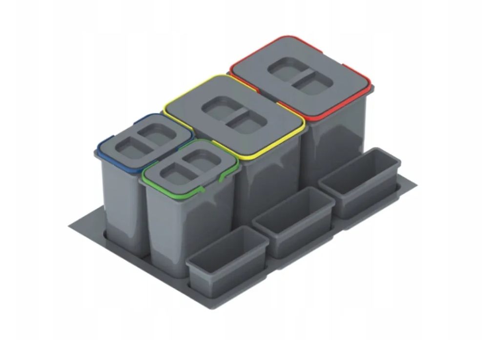 3. що сприятиме сегрегації відходів. Усі елементи виготовлені з високоякісної пластику, тому вони довговічні та довговічні. У контейнерів є обкладинки, які не передають неприємні запахи та барвисті ручки, щоб полегшити спорожнення та сегрегацію. Завдяки гладкій поверхні, легко підтримувати їх чистими. Основа забезпечує контейнери зі стабілізацією при відкритті та закритті ящика.