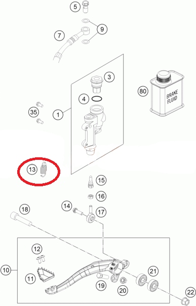 Число 13 в гравюрі (на прикладі KTM 125 SX 2016-Назад насоса гальма)
