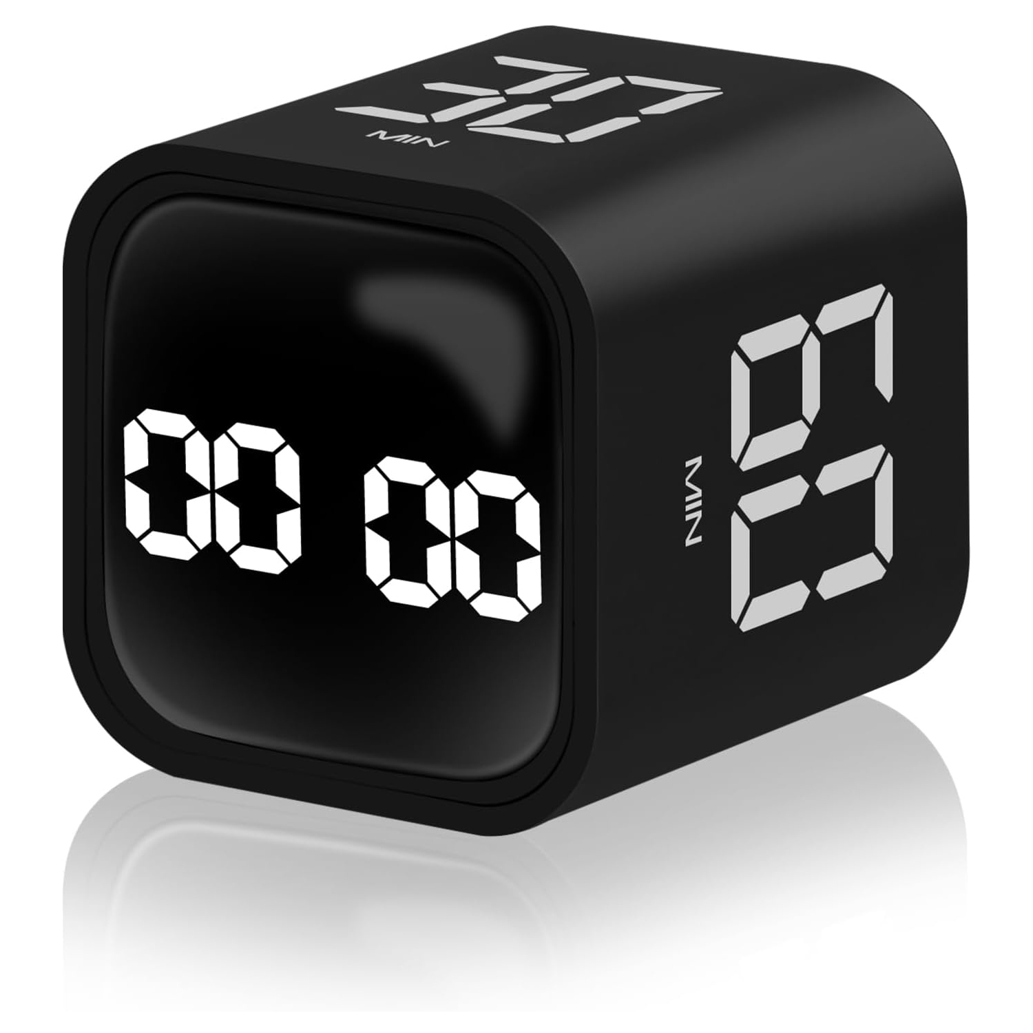 1. [Гравітаційне вимірювання та ручний режим] Наш кухонний таймер має два режими: ручне налаштування та гравітаційне вимірювання. У випадку гравітаційного режиму просто виберіть кнопку, щоб перейти в режим 1 та повернути дисплей вгору, щоб автоматично запустити підрахунку (5/10/30/60 хвилин). У випадку в ручному режимі просто виберіть кнопку, щоб перейти на режим 2. Ви можете легко встановити відлік часу та послідовного вимірювання часу в діапазоні з 0:00 до 99:59 хвилин для задоволення різних потреб використання.