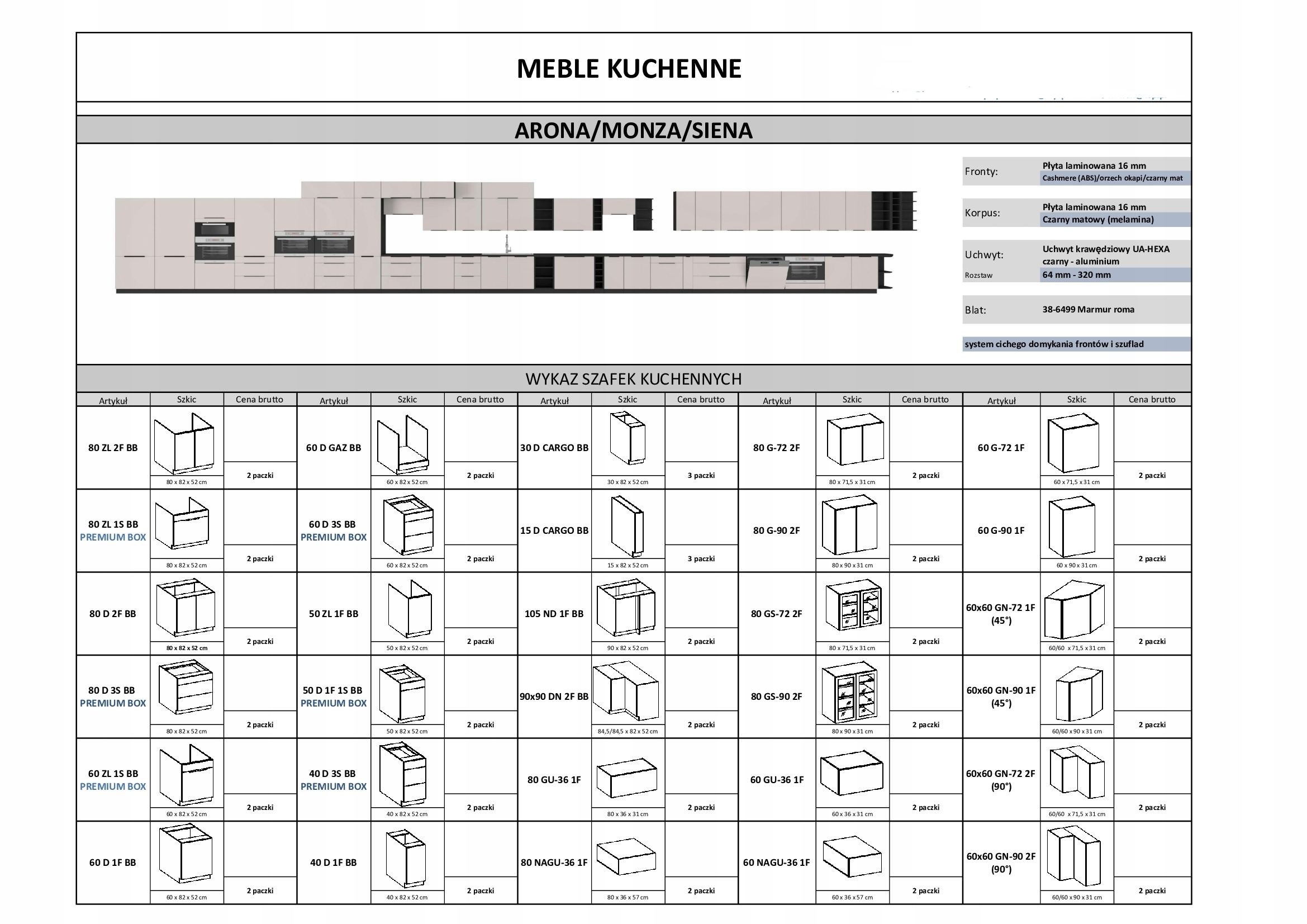 Кухонний гарнітур MONZA, ARONA, SIENA - РОЗМІРИ: 330 x 270 см