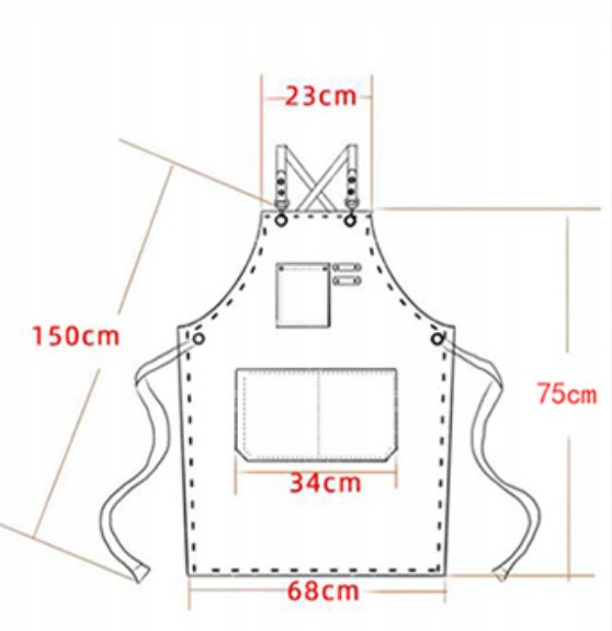 - Фартух має лямки, які дозволяють регулювати фартух як по довжині, так і по ширині.