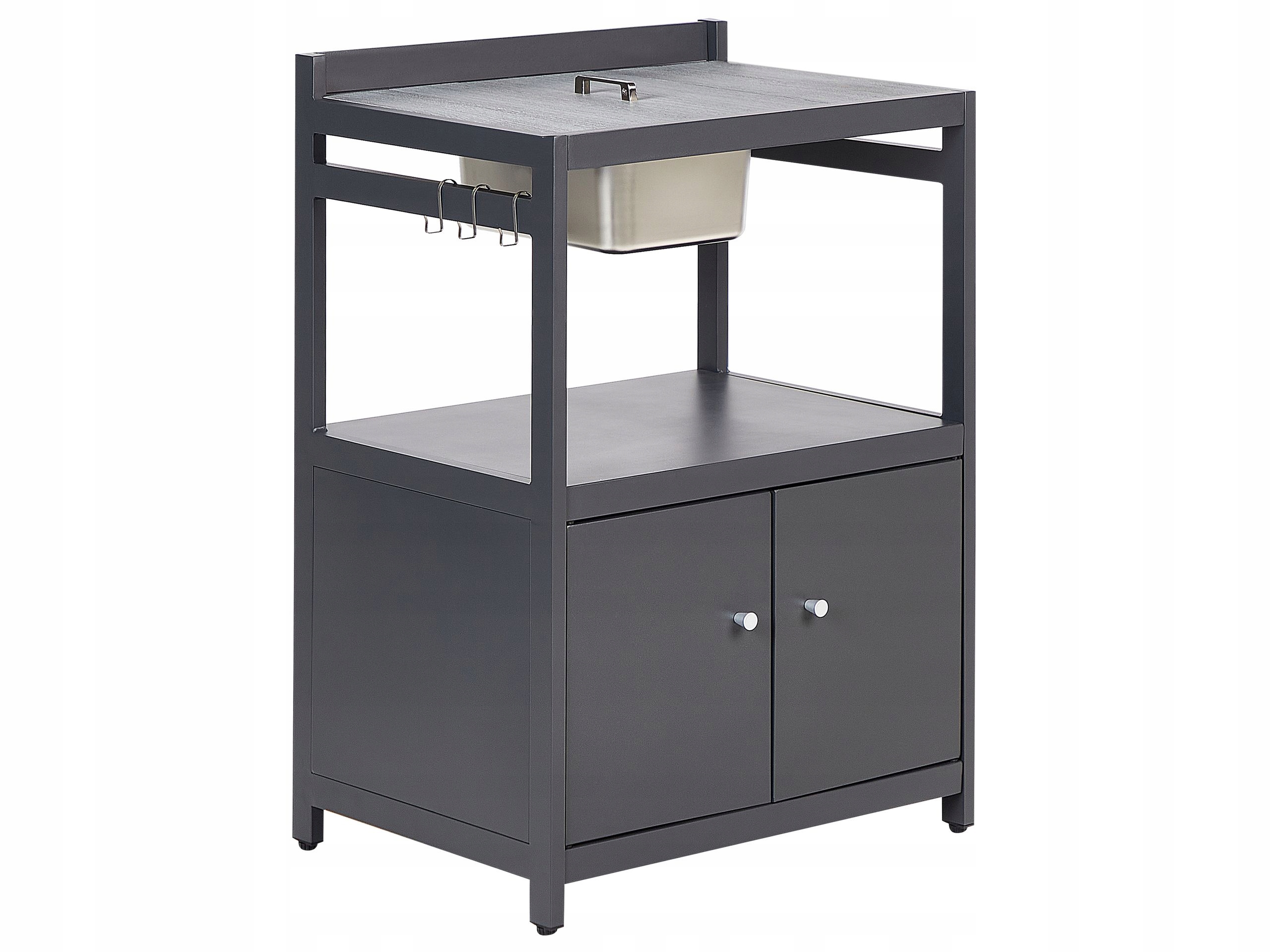 Змініть свій зовнішній простір завдяки цьому стильному та універсальному набору, ідеально відповідних сучасних композицій. Виготовлений з постійного пофарбованого порошком алюмінію, з вершинами та робочими поверхнями, виготовленими з синтетичної деревини, цей набір стійкий до погодних умов та ультрафіолетового випромінювання та вимагає мінімального догляду, що гарантує використання тривалого терміну. Колекція включає три ключові елементи: робоча станція з раковиною та полицею для зручної приготування страв, шафи з прихованою контейнером для льоду, ідеально підходить для охолодження напоїв та практичної коляски порції, яка, завдяки колесам, можна легко переміщувати. Кожен елемент можна використовувати поодинці або складати з іншими, надаючи повну гнучкість у адаптації простору до індивідуальних потреб. Цей сучасний набір поєднує функціональність з елегантною конструкцією, що становить ідеальне доповнення до ганку або внутрішнього дворика.
