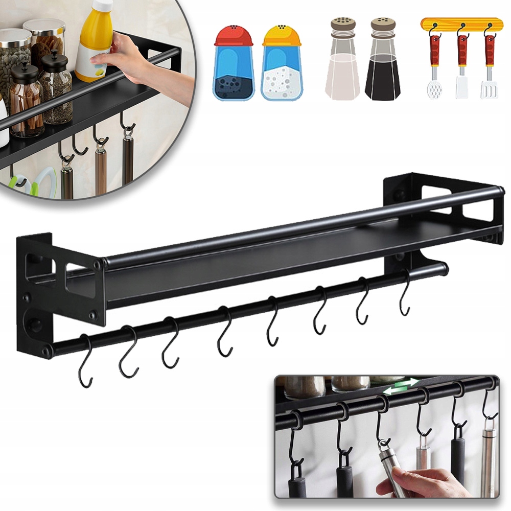 КУХОННА ПОЛИЦЯ СПЕЦІЇ НАСТІННІ ВІШАЛКИ З РЕЛІНГОМ 8 ГАЧКОМ ДЛЯ ПОСУДУ
