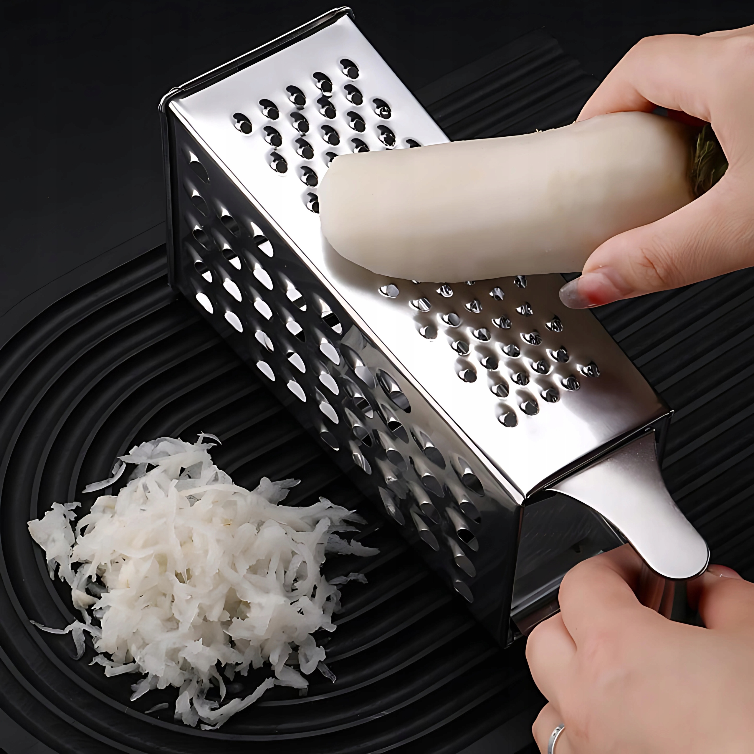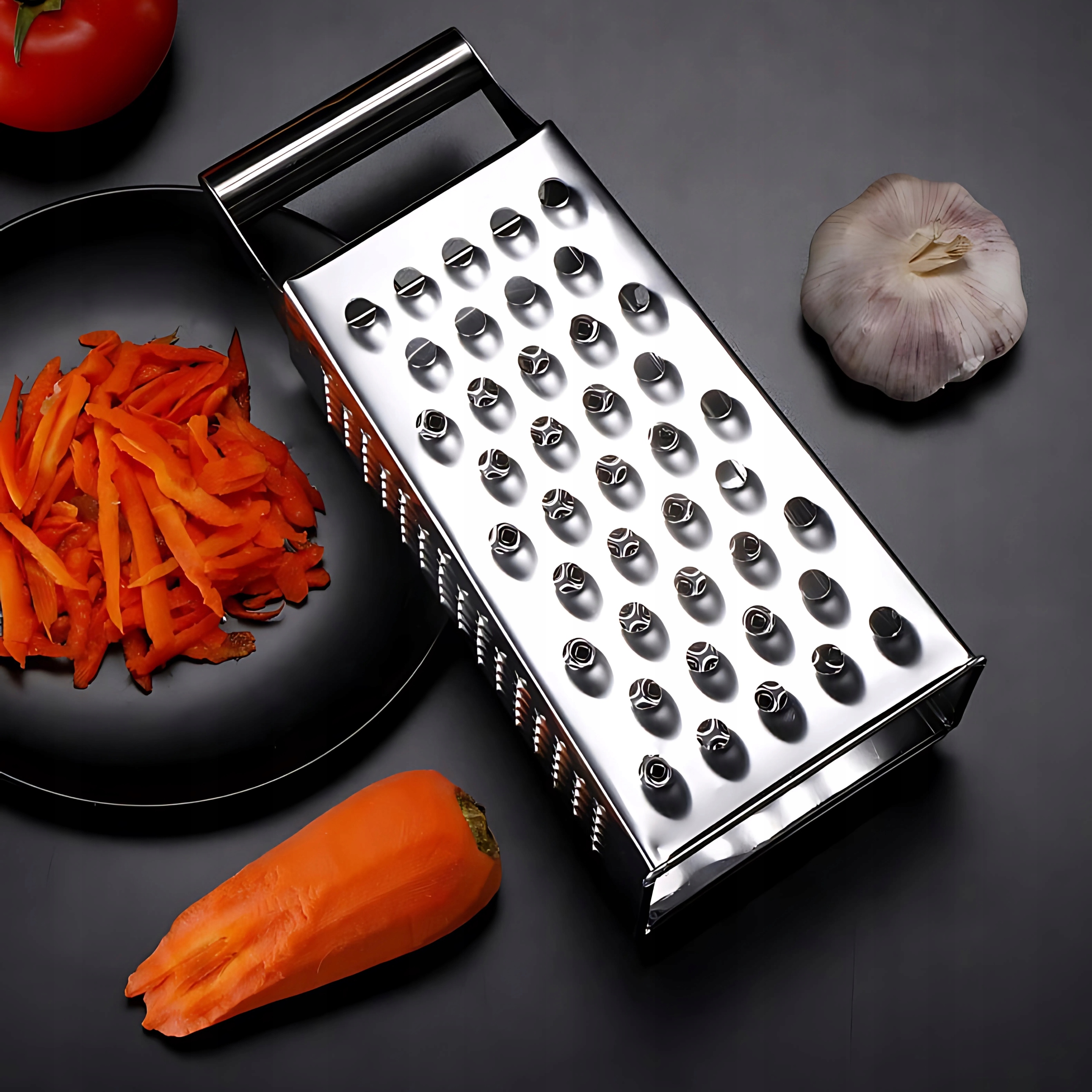 Завдяки різким твердим лезам ви можете швидко та ефективно витерти моркву, сир, картоплю та інші інгредієнти .