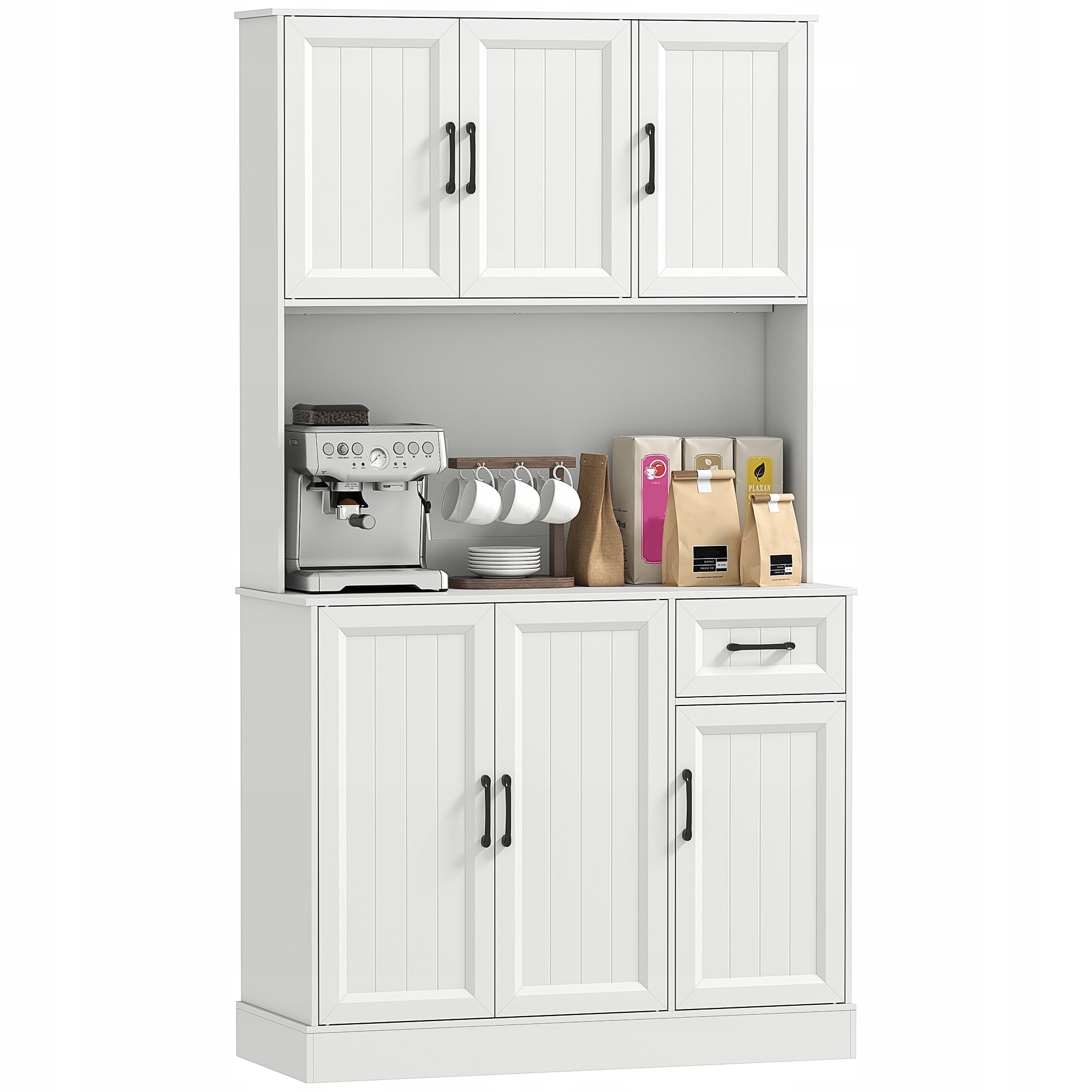 З цією кухонною шафою HOMCOM буде легко організувати щоденний хаос на кухні. Чотири шафи і один плавно висувний ящик забезпечують простір для кухонного начиння, посуду та приладдя. Регульовані полиці для буфету можна налаштувати індивідуально, а висока конструкція шафи надає вашому дому теплий сучасний вигляд.