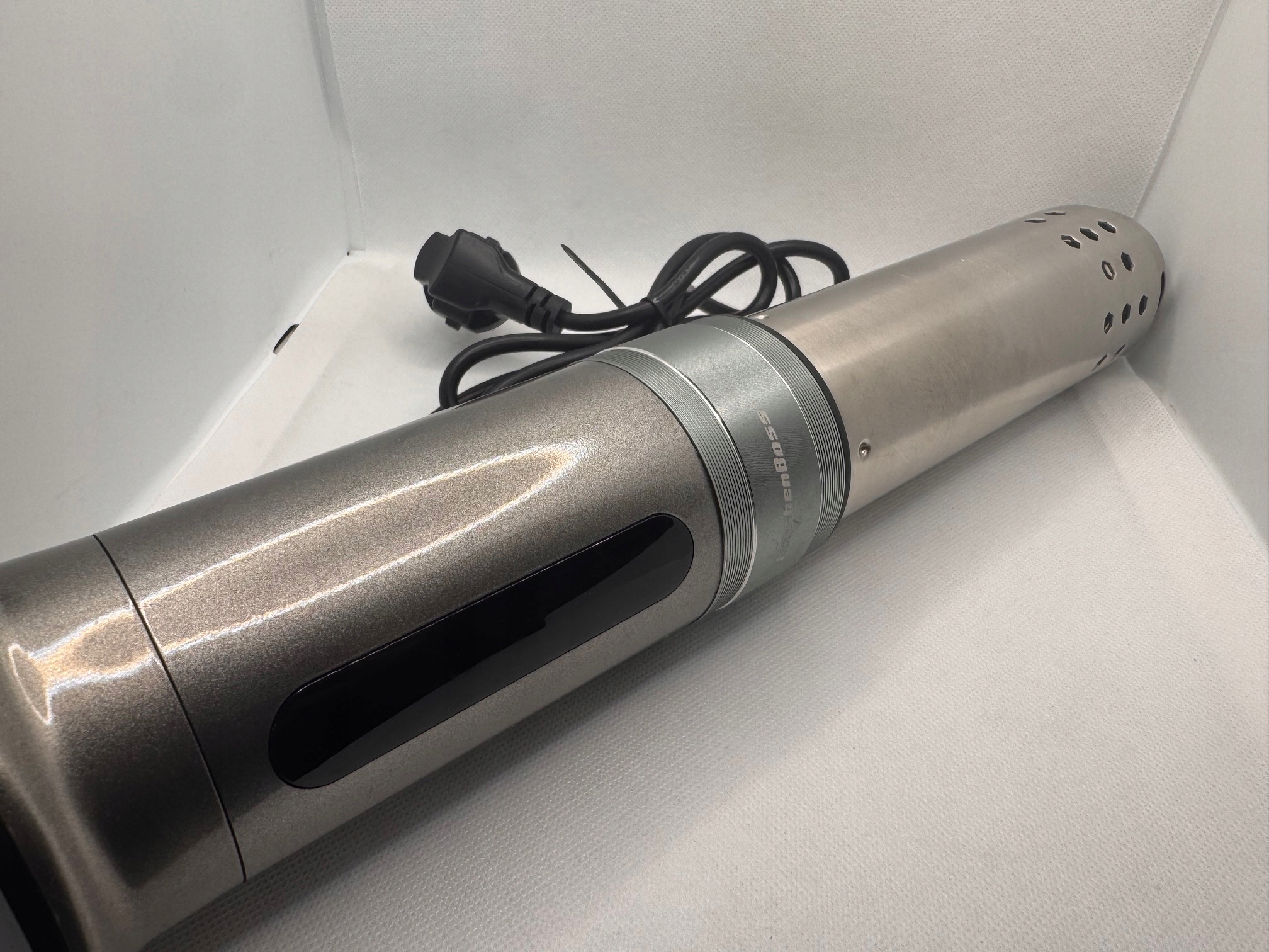 - Назва предмета : Kitchenboss sous vide garer паличка точна кухня/1100 Вт пружина 360 ° Температура Діапазон 40 ℃ -90 ℃ (± 0,1 ° C) • IPX7 • Світлодіодний сенсорний дисплей • Ємність до 15 л • 10 мішків у наборі